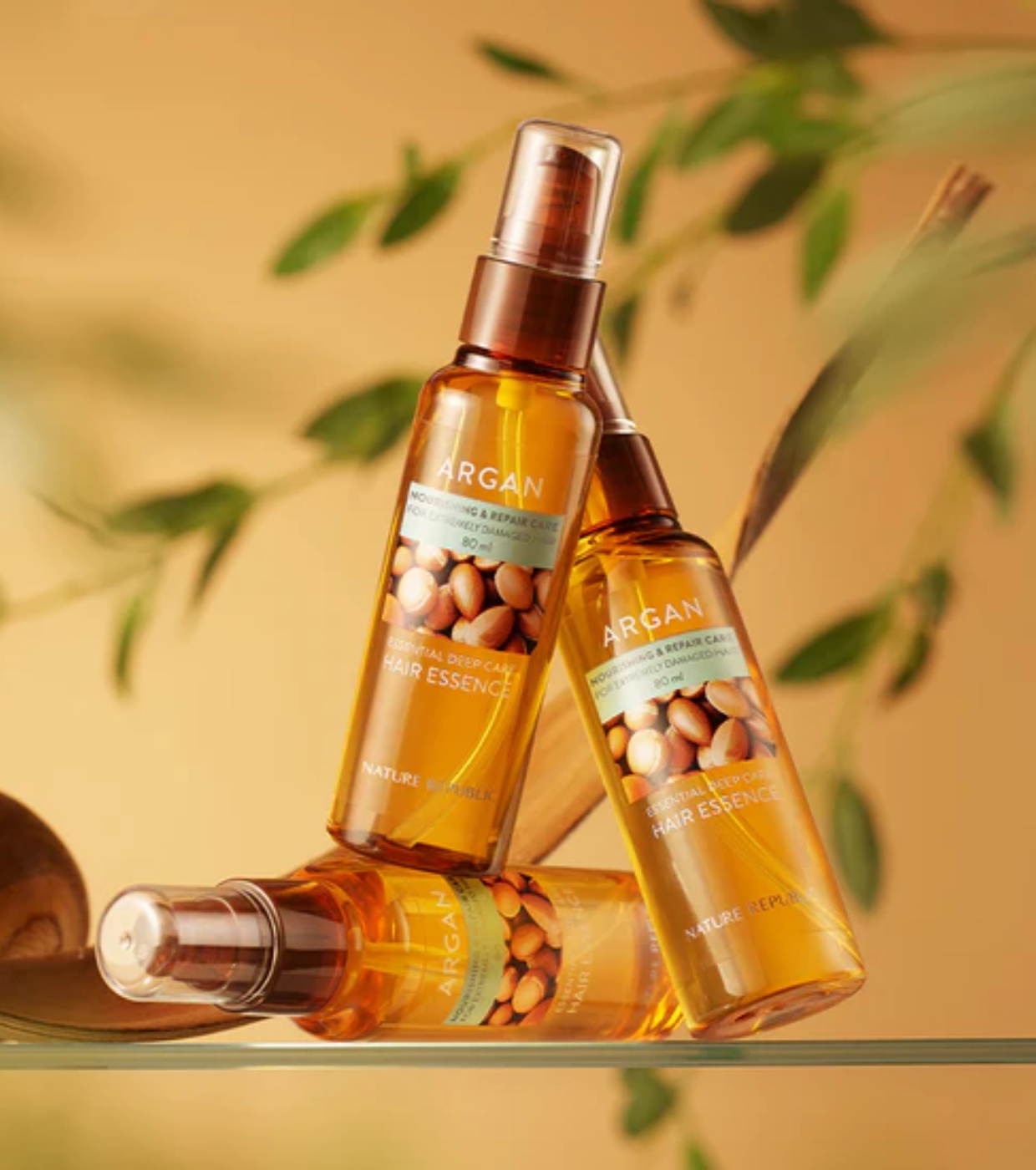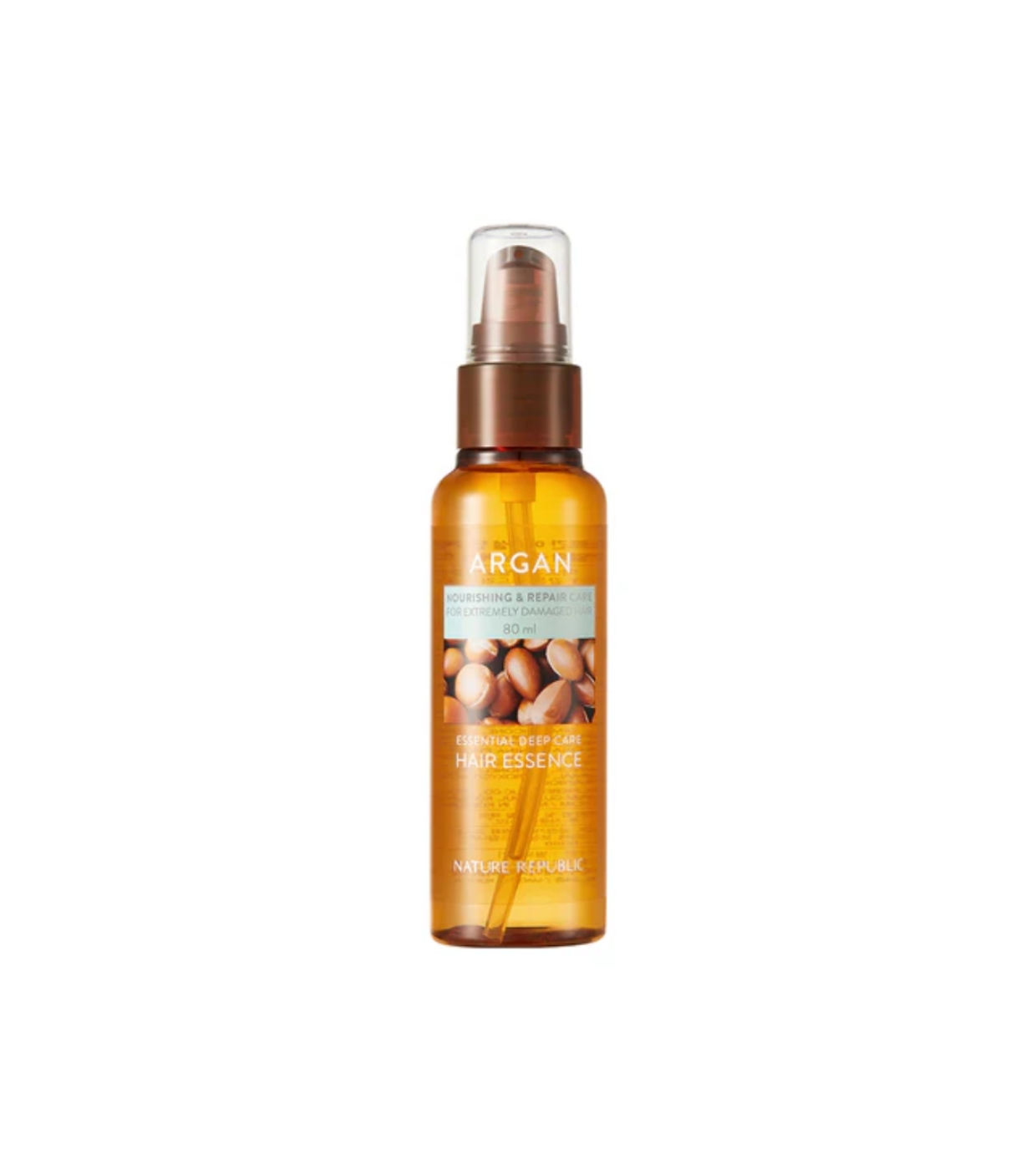 Verleihen Sie Ihrem Haar mit diesem leichten und pflegenden Argan Essential Haaröl von Nature Republic wieder Leben, Geschmeidigkeit und Glanz.