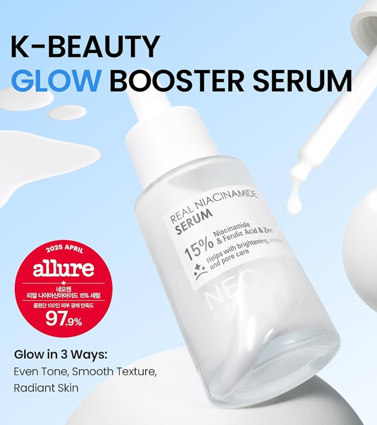 Das Dermalogy Real Niacinamide 15% Serum von Neogen ist ein Serum, das entwickelt wurde, um Hyperpigmentierung, ungleichmäßigen Hautton und sichtbare Poren zu behandeln und gleichzeitig die Haut mit Feuchtigkeit zu versorgen und zu beruhigen.