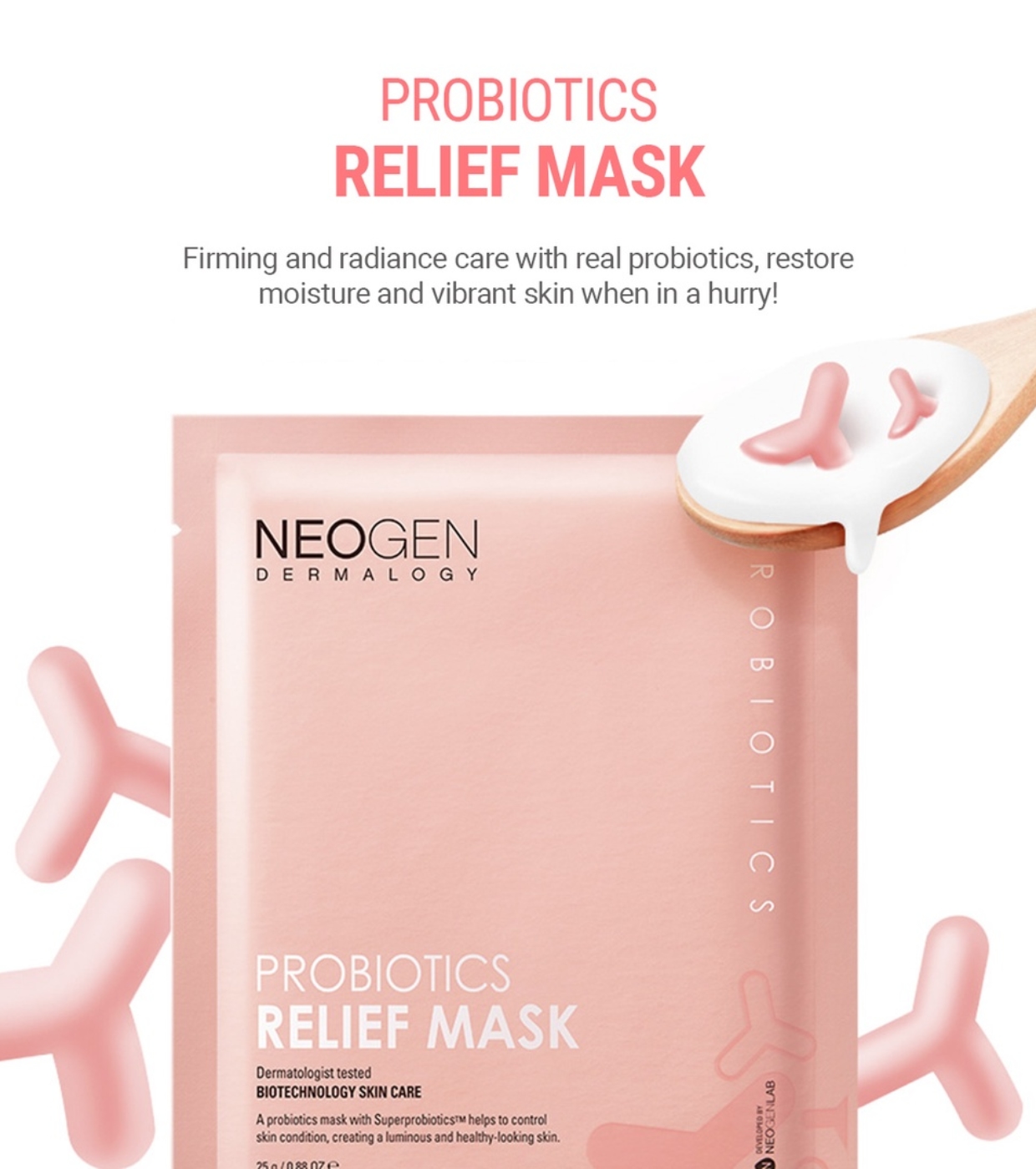 Die Dermalogy Probiotics Relief Mask von Neogen ist eine wohltuende und intensive Gesichtsmaske, die speziell für trockene, empfindliche oder geschwächte Hautbarriere entwickelt wurde.
