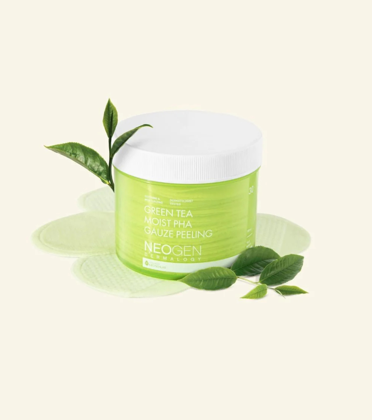 Die Green Tea Moist PHA Gauze Peeling Peeling-Scheiben von Neogen kombinieren sanftes Peeling, intensive Feuchtigkeitszufuhr und beruhigende Wirkung, um die Haut glatter, frischer und ausgeglichener zu machen.