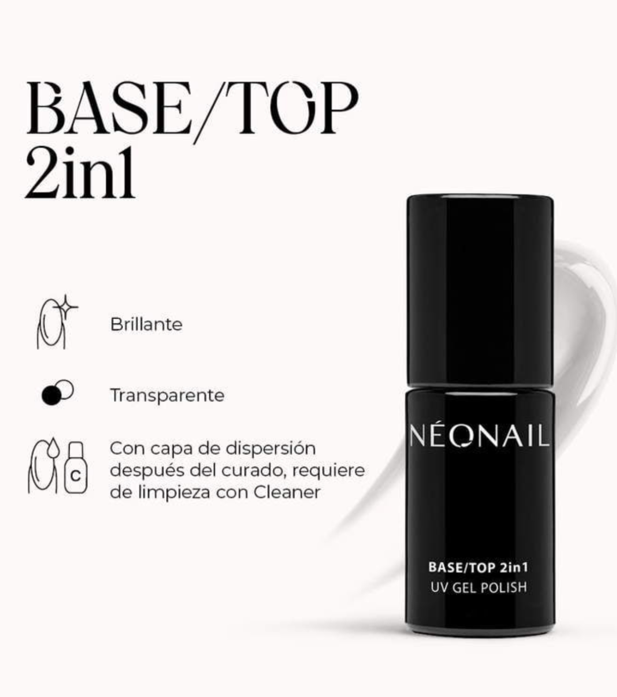 Der Base/Top 2in1 von NeoNail ist die praktische und universelle Lösung für alle, die sich Komfort und lang anhaltende Ergebnisse bei ihrer semi-permanenten Maniküre wünschen.
