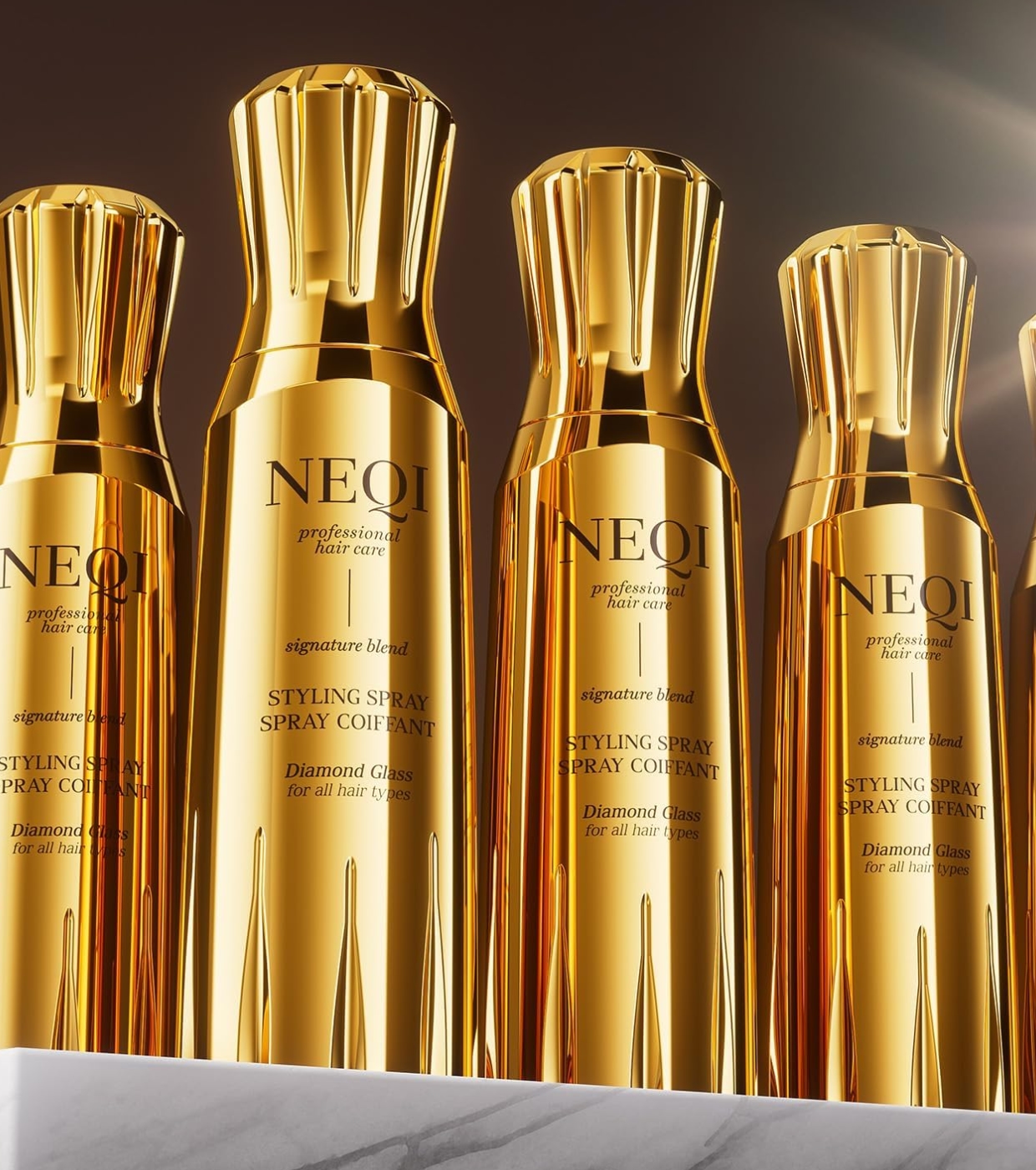 Erzielen Sie den „Kristallhaar“-Effekt mit Diamond Glass Styling Spray Diamond Glass Styling Spray , einem professionellen Spray, das vor Feuchtigkeit schützt, für spiegelnden Glanz sorgt und Ihre Frisur unter Kontrolle hält.neqi-hair.com.