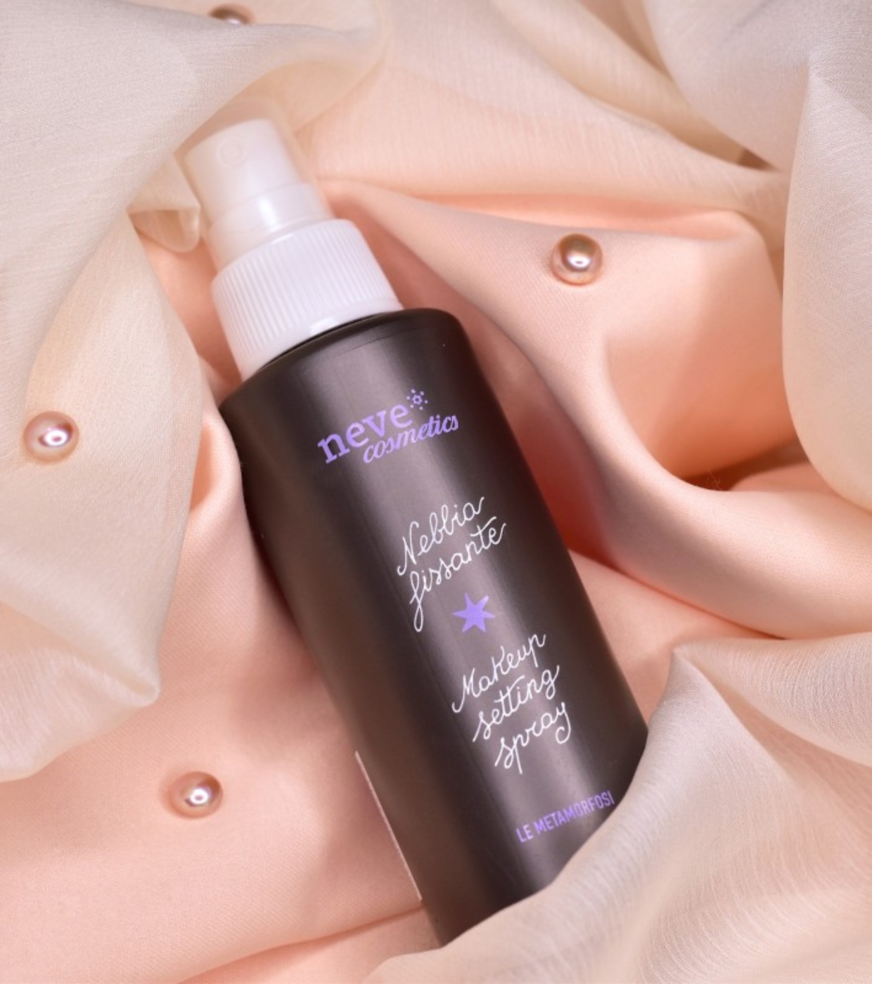 Das Neve Cosmetics Makeup Setting Spray ist ein multifunktionales Schutzspray, das die Haltbarkeit des Make-ups verlängert und die Anwendung von Mineralprodukten verbessert.