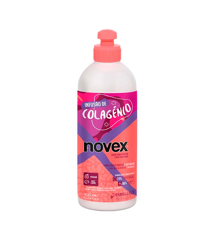 Der Conditioner ohne Spülung von Novex Collagen Infusion enthält 100 % pflanzliches Kollagen und ist für feines, strapaziertes und stumpfes Haar geeignet und bekämpft Haarbrüchigkeit.
