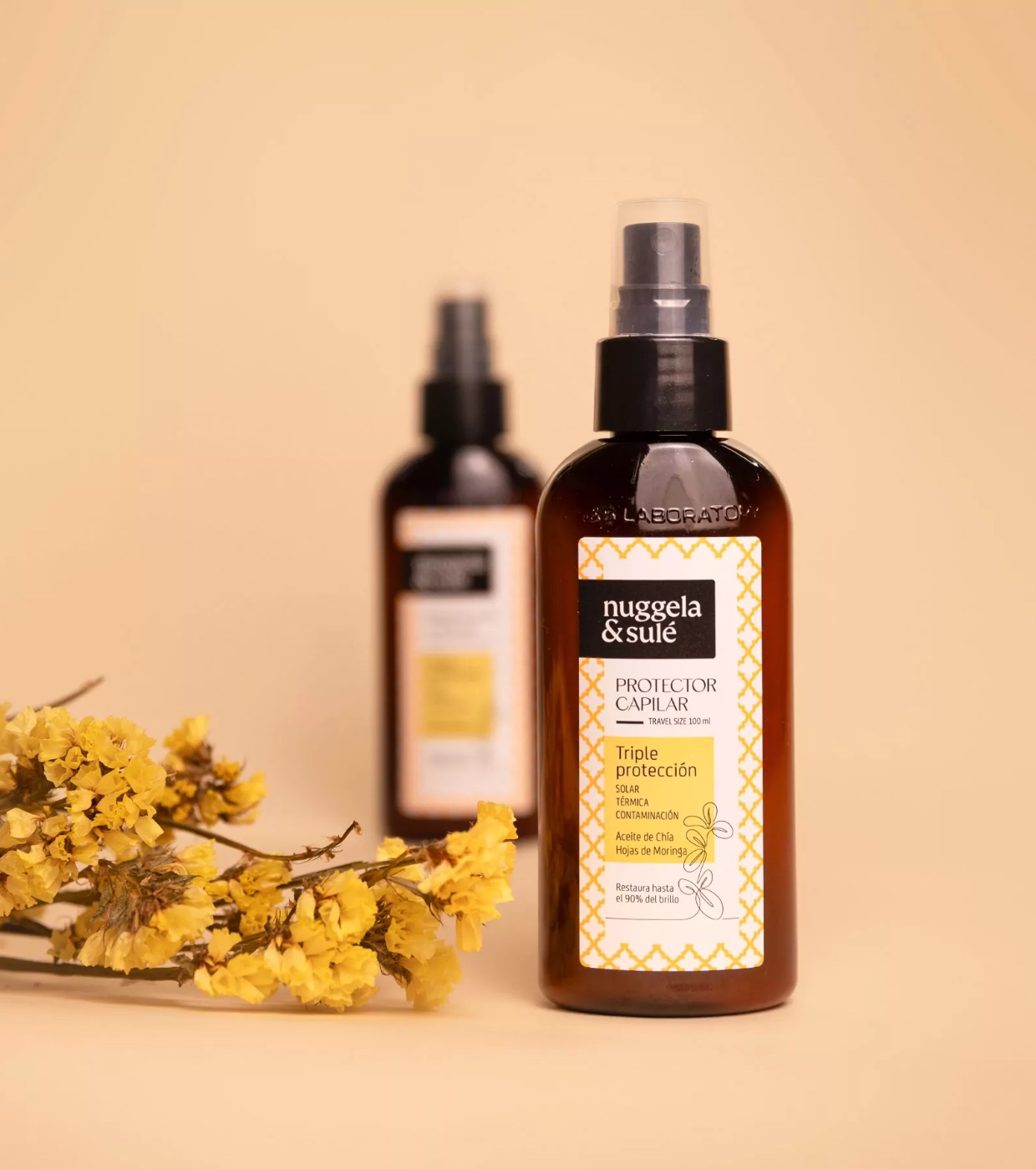 Nuggela & Sulé bringt den ersten TOTAL Haarschutz auf den Markt, der sowohl die durch die UV-Strahlen der Sonne verursachte Oxidation als auch die hohen Temperaturen durch Bügeleisen oder Haartrockner schützt.