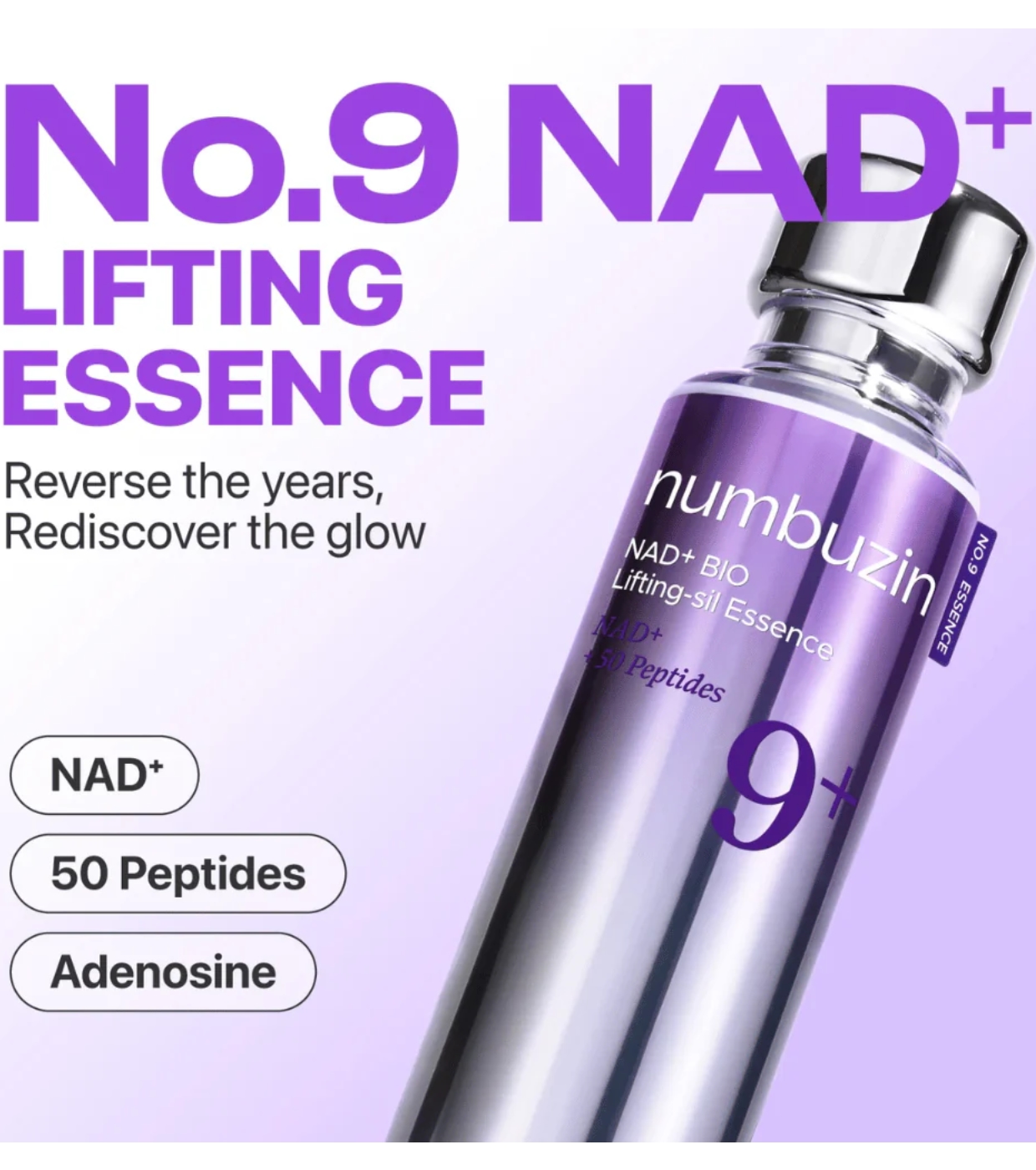 Numbuzin No.9 NAD Bio Lifting-sil Essence ist eine hochwirksame Anti-Aging-Essenz, die Wissenschaft und Natur vereint, um der Haut Festigkeit, Elastizität und Ausstrahlung zurückzugeben.