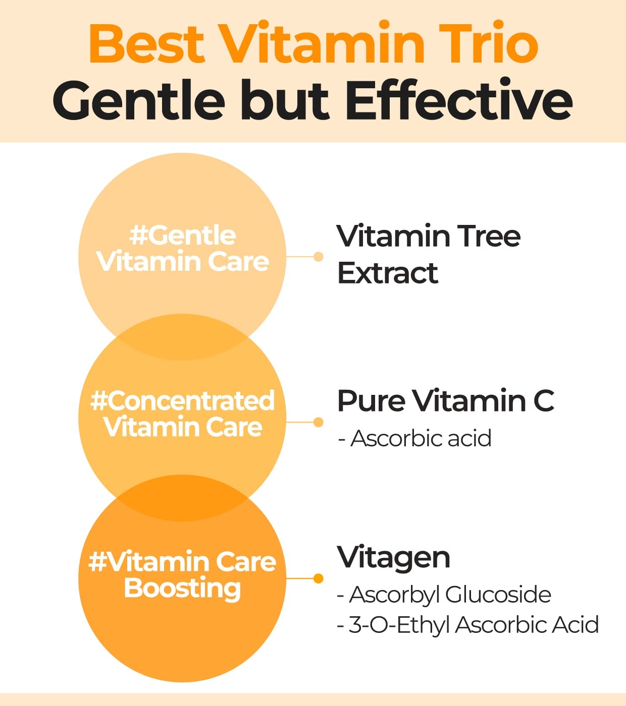 - Sofortige Aufhellung – Vitamin C und Vitaminextrakte wirken zusammen, um den Hautton aufzuhellen und Stumpfheit zu reduzieren.