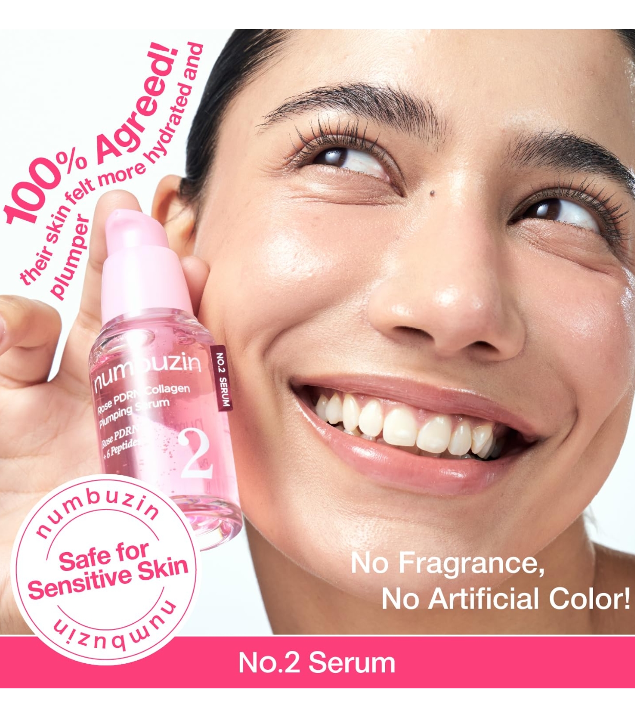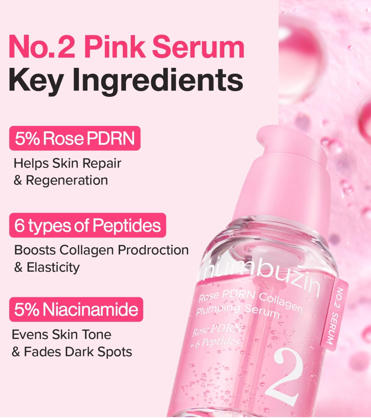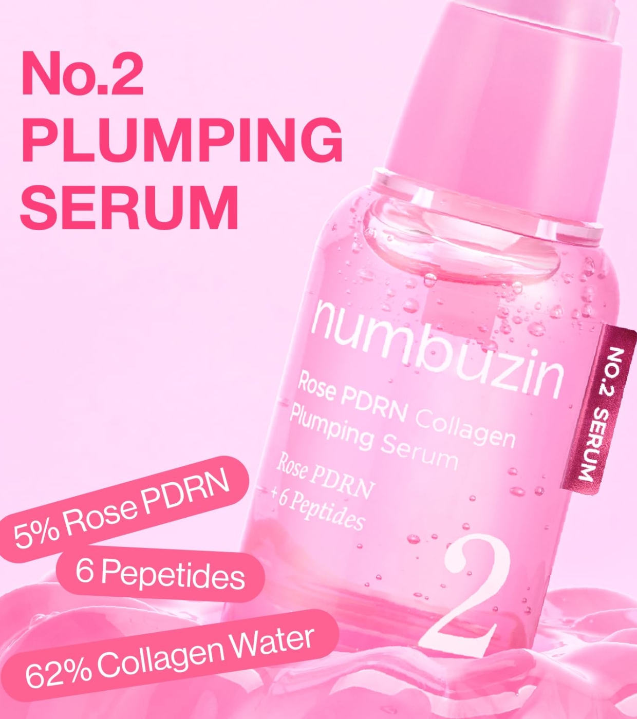 Holen Sie sich die straffe, glatte und elastische Haut, von der Sie immer geträumt haben, mit diesem Serum No.2 Rose PDRN Collagen Plumping von Numbuzin , das mit hochmodernen Inhaltsstoffen formuliert ist, um reife oder müde Haut zu reparieren, aufzupolstern und zu revitalisieren.