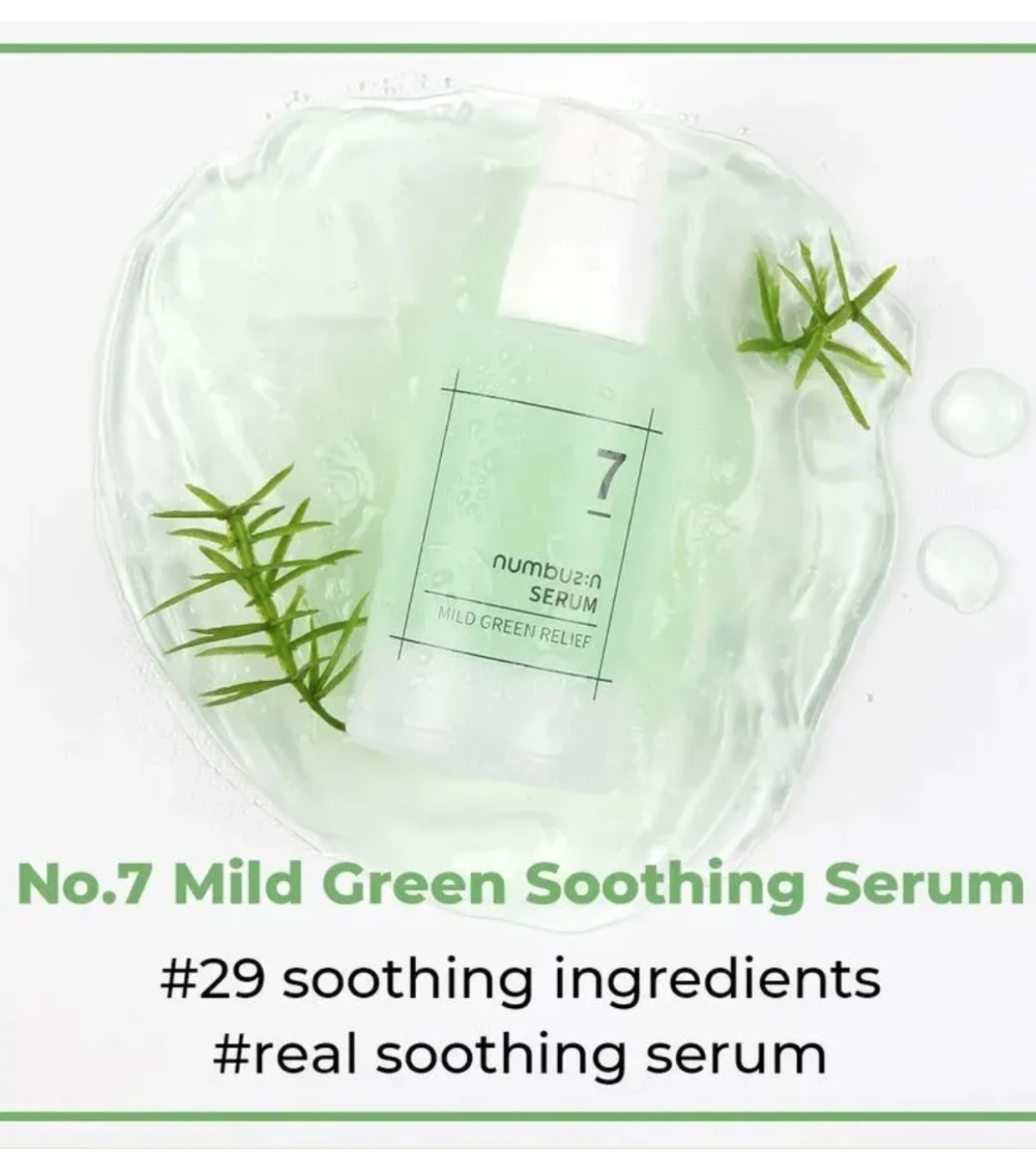 Beruhigen, hydratisieren und stärken Sie Ihre Haut mit dieser wässrigen Geltextur No.7 Mild Green Soothing von Numbuzin , die speziell für empfindliche oder gereizte Haut entwickelt wurde.