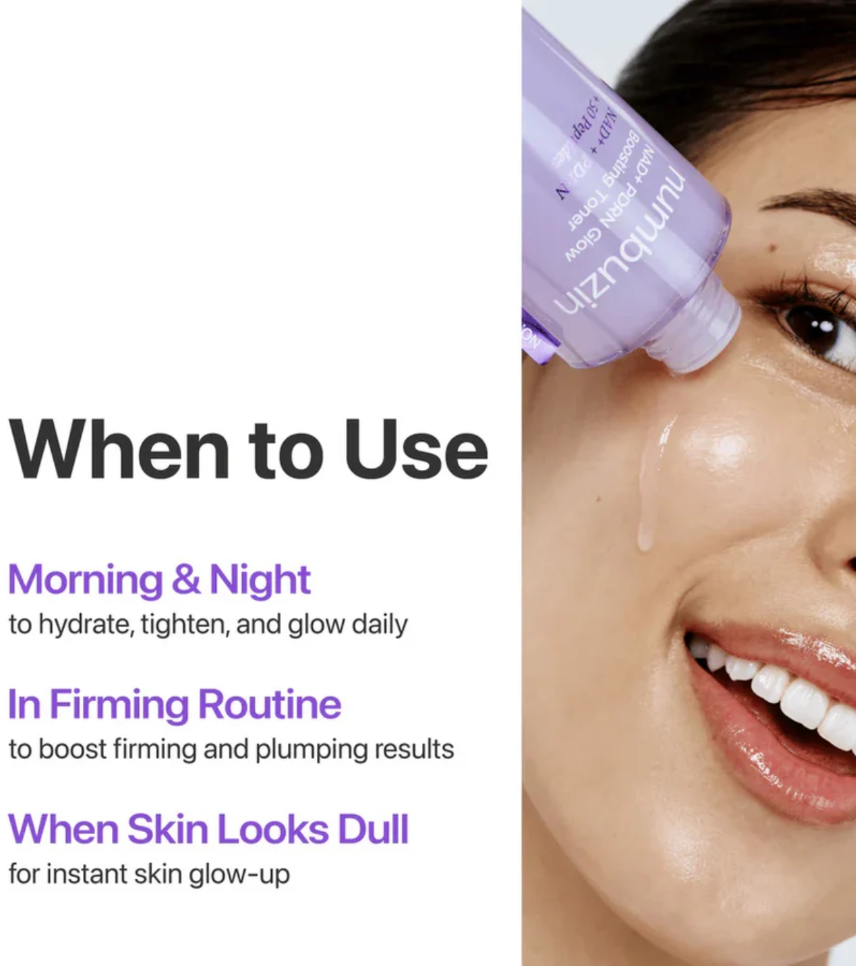Dieses aufhellende Gesichtswasser von Numbuzin enthält NAD+, Lachs-PDRN und 50 verschiedene Peptide, um die Elastizität zu verbessern, die Hautbarriere zu stärken und die Haut zu revitalisieren, wodurch eine strahlende Leuchtkraft von innen zum Vorschein kommt.