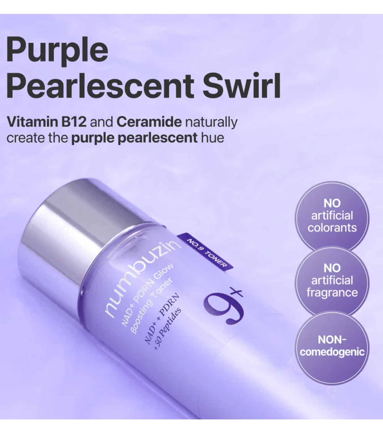 - Vitamin B12 und Ceramide sind verantwortlich für die leuchtende, auroraartige violette Textur, die der Haut einen natürlichen und strahlenden Glanz verleiht.