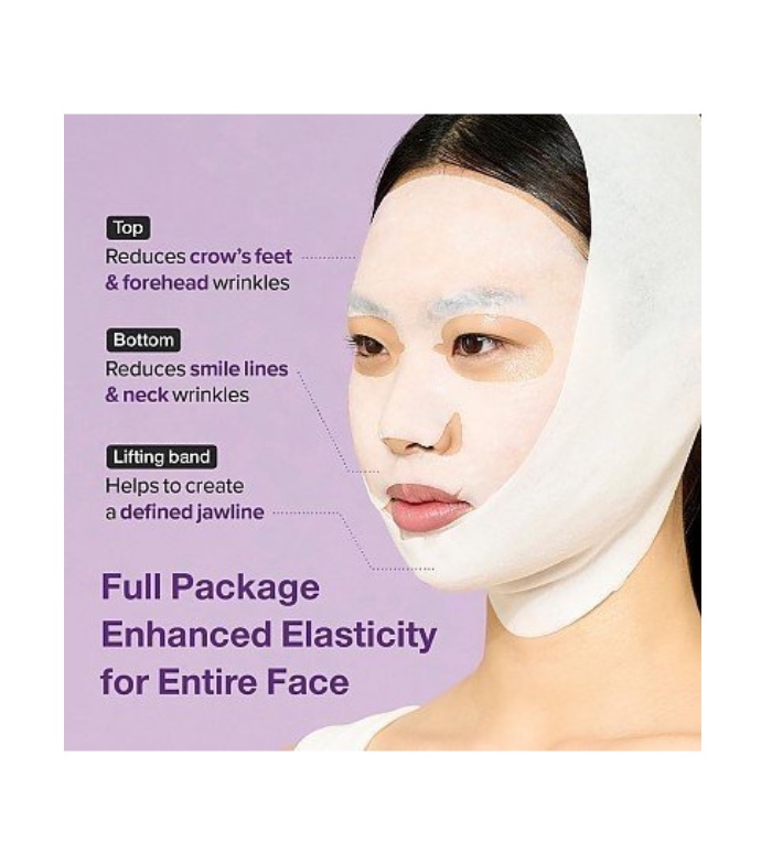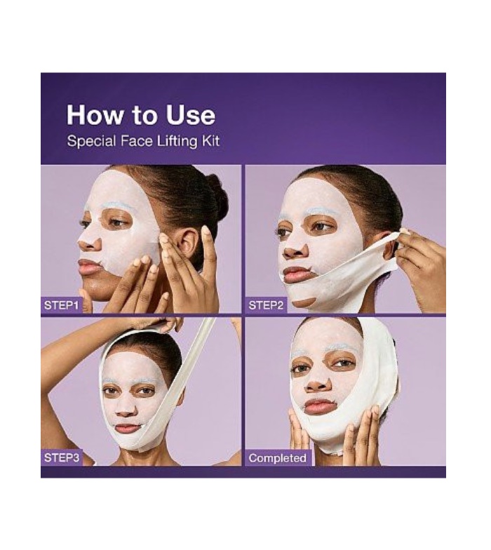 Um die Wirkung zu verstärken, enthält es ein Stützband, das den Lifting-Effekt maximiert und dabei hilft, die Gesichtskonturen neu zu definieren, während die Wirkstoffe in die Haut eindringen.