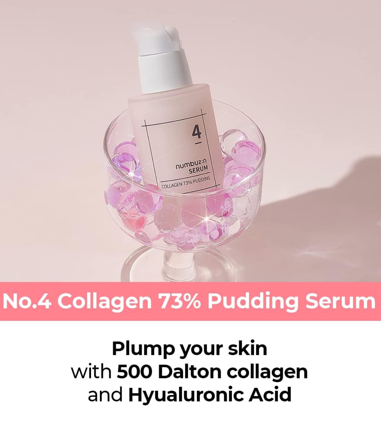 Das No.4 Collagen 73 % Serum von Numbuzin enthält 73 % Kollagen, um müde Haut zu straffen, mit Feuchtigkeit zu versorgen und aufzupolstern.