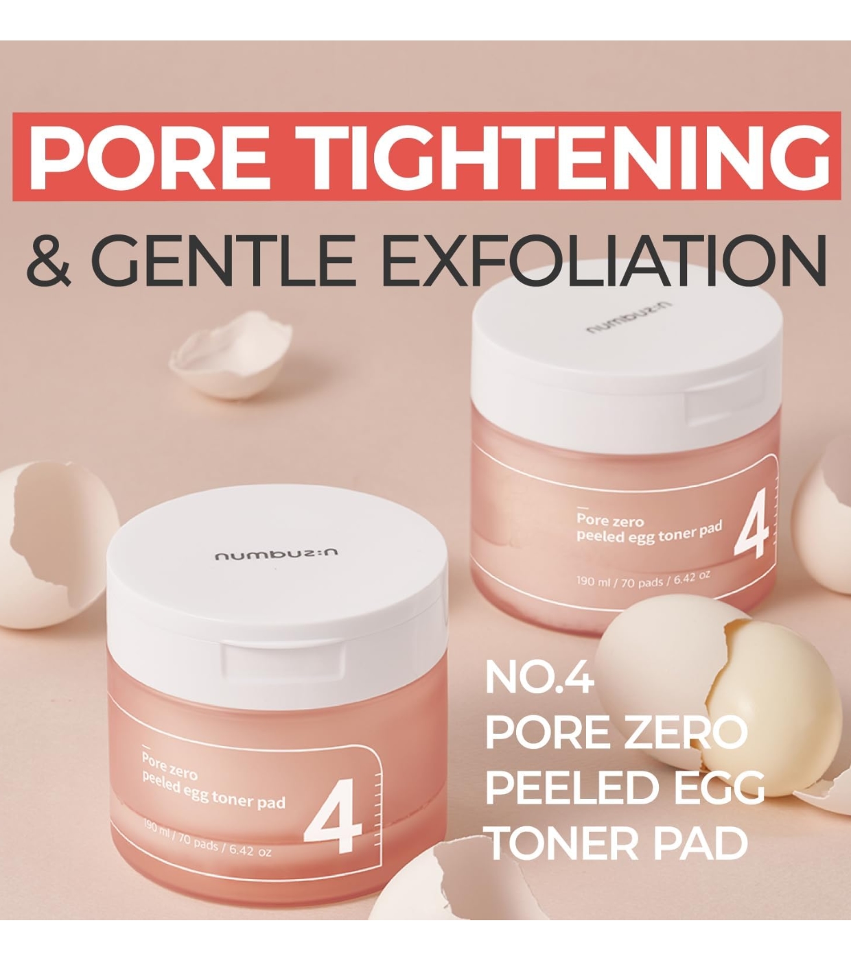 Holen Sie sich kristallklare Haut mit den No.4 Pore Zero Peeled Egg Exfoliating Toning Pads von Numbuzin .
