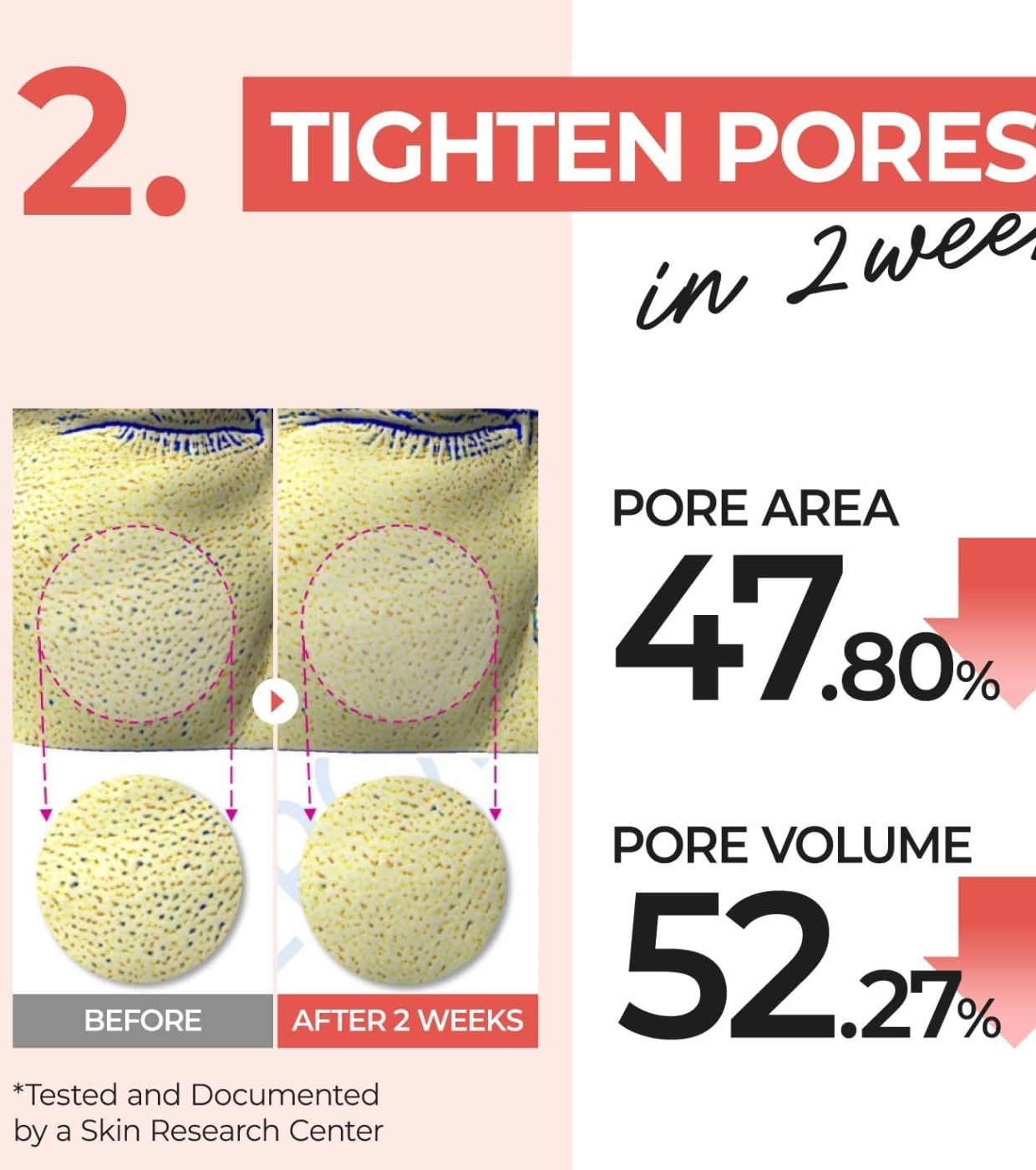 Die Formel enthält Nachtkerzenextrakt, Pfeilwurzextrakt, Sumpfkieferextrakt und Ulmus-davidiana-Wurzelextrakt, um die Talgproduktion zu kontrollieren und die Poren zu verengen.