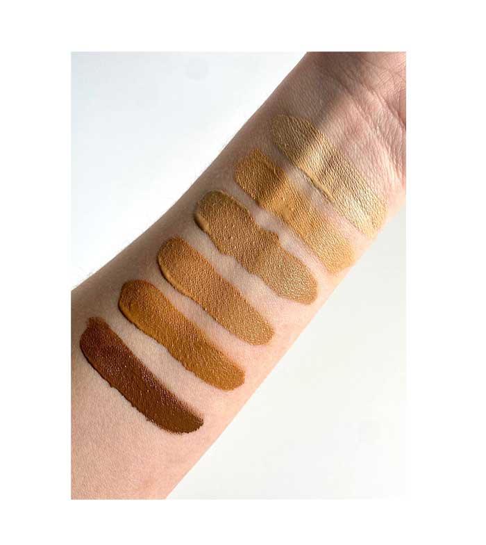 Seine leichte, nicht fettende Textur hilft, den Glanz zu kontrollieren, bietet eine aufbaubare mittlere Deckkraft mit einem matten Finish, lässt sich verblenden und liegt leicht auf der Haut, während es 12 Stunden lang Feuchtigkeit spendet.