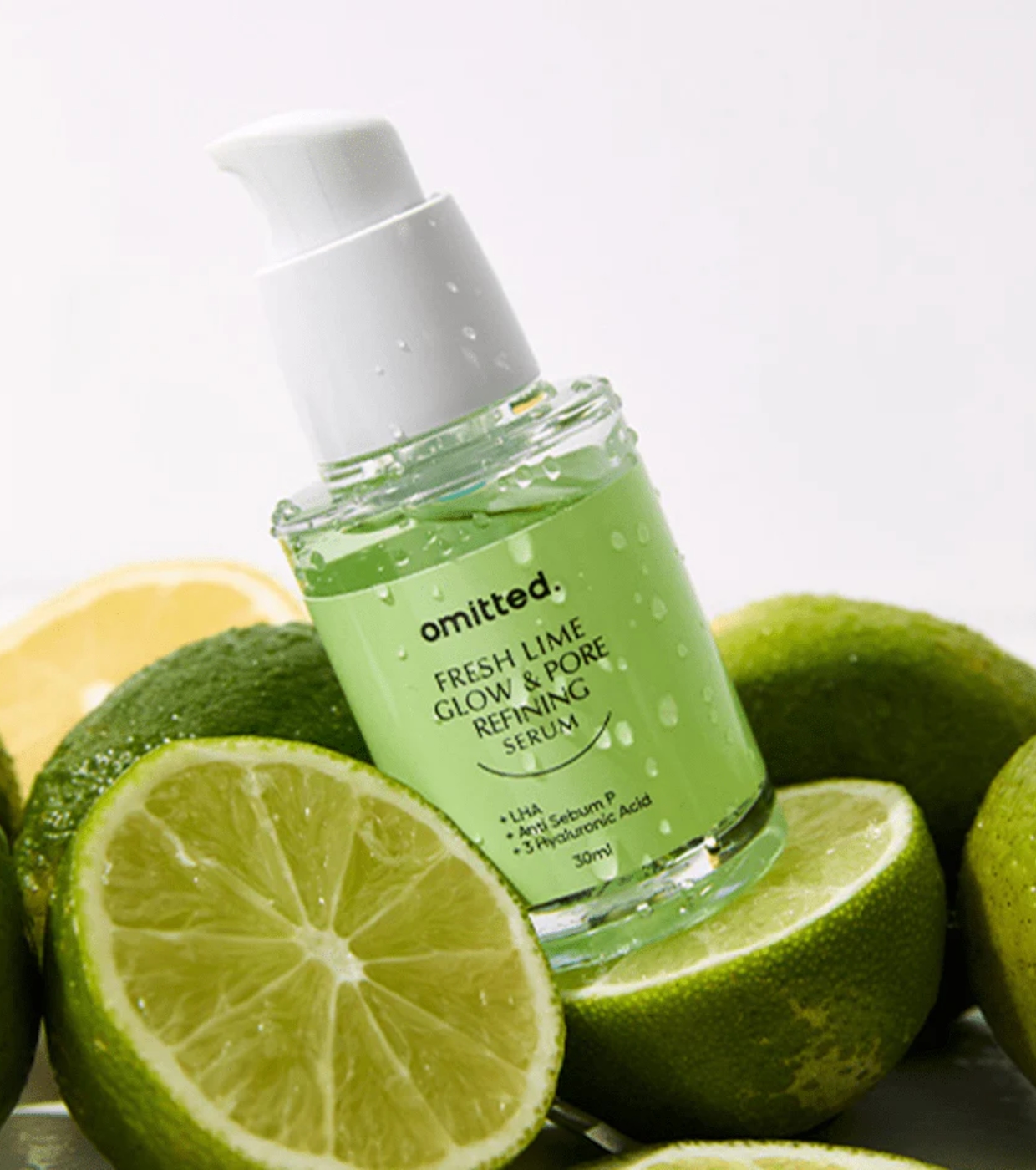 Fresh Lime Glow & Pore Refining Serums Omitted ist ein fortschrittliches Gesichtsserum, das die Haut aufhellt, die Hautstruktur verbessert und das Erscheinungsbild vergrößerter Poren reduziert, ohne die Feuchtigkeitsversorgung zu beeinträchtigen.