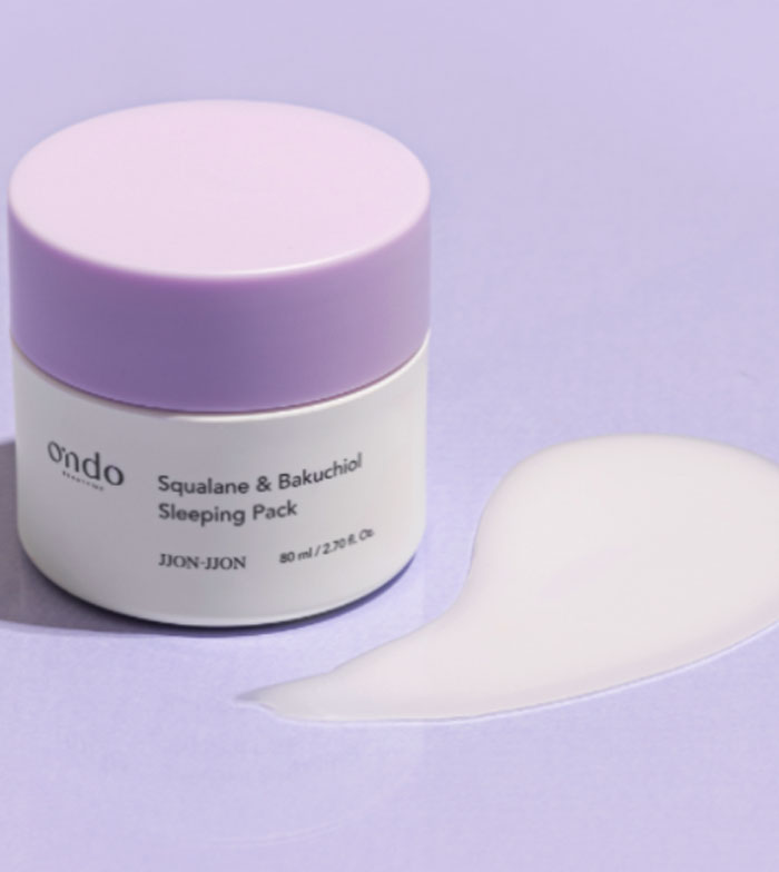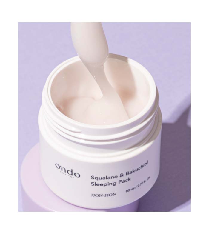 Die Nachtmaske JJon- JJon Squalane & Bakuchiol von Ondo Beauty 36.5 hat eine gelatineartige Textur, die die Schutzbarriere der Haut stärkt und hilft, Zeichen der Hautalterung vorzubeugen, sodass die Haut glatt und saftig bleibt.