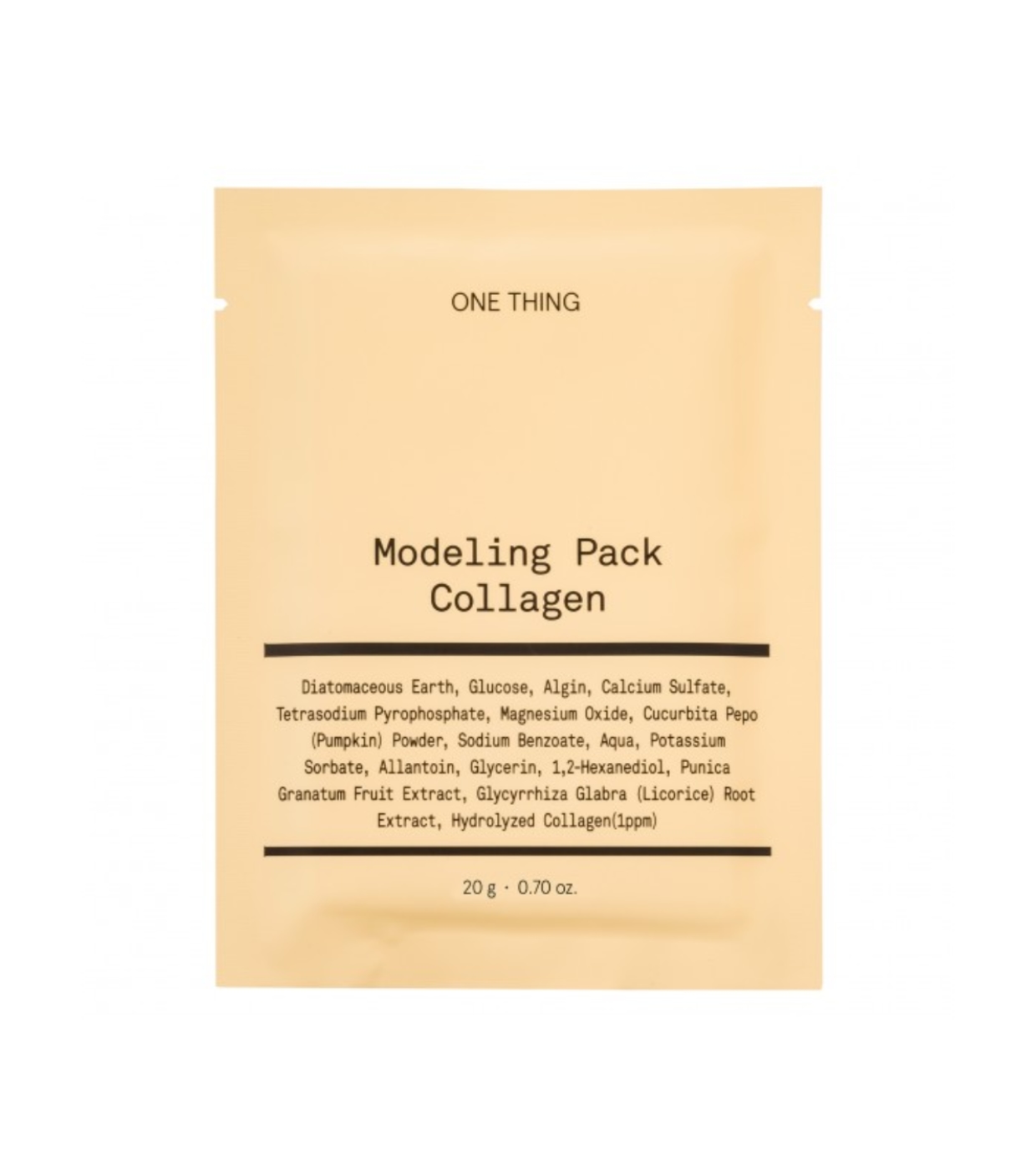 Erneuern Sie die Festigkeit und Leuchtkraft Ihrer Haut mit Collagen Modeling von ONE THING , einer modellierenden Maske in Puderform (Gummimaske oder Peel-off), die beim Mischen mit Wasser aktiviert wird und eine flexible Textur bildet, die sich perfekt an das Gesicht anpasst.