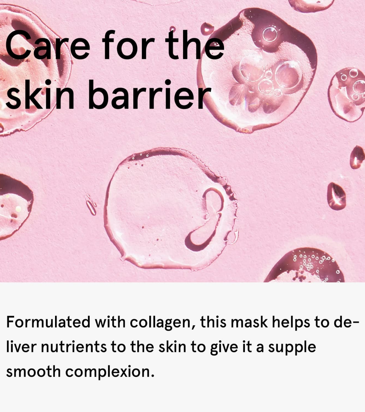 Diese Maske enthält hydrolysiertes Kollagen und trägt dazu bei, die Festigkeit, Glätte und Dichte der Haut zu verbessern, während Granatapfelextrakt eine wirksame Dosis natürlicher Antioxidantien liefert, um freie Radikale zu bekämpfen und den natürlichen Glanz Ihrer Haut zu verstärken.