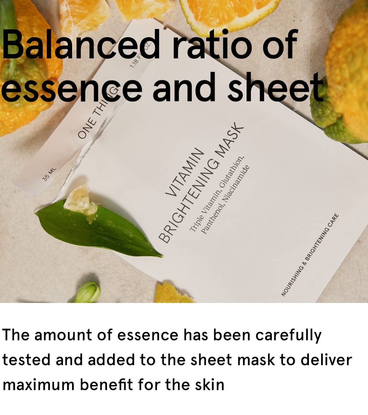 Stellen Sie die natürliche Ausstrahlung Ihrer Haut mit der Vitamin Brightening Mask von ONE THING wieder her, einer Tuchmaske, angereichert mit einem kraftvollen Cocktail aus Vitaminen und Antioxidantien, der den Gesichtston revitalisieren, aufhellen und vereinheitlichen soll.