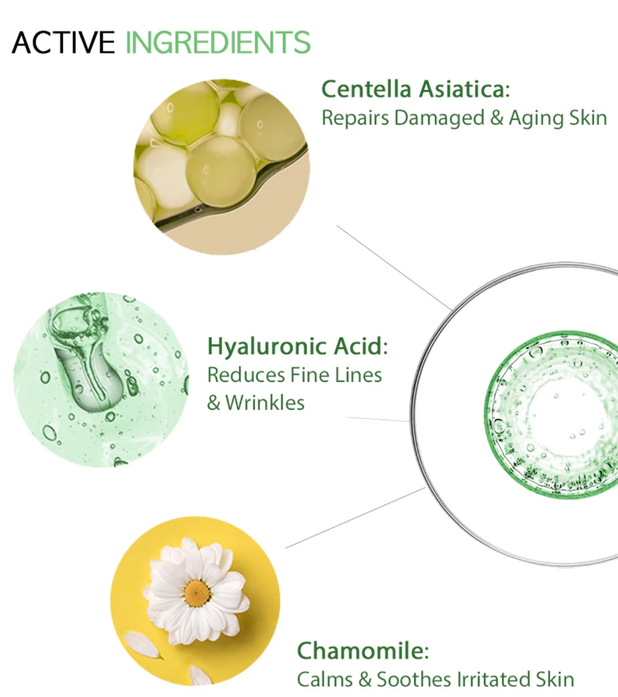 - Cica (Centella Asiatica) – Beruhigt, repariert und stärkt die Hautbarriere.