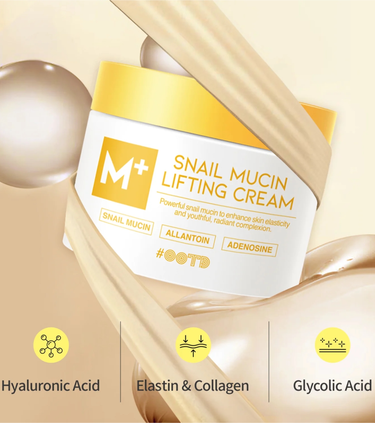 Entdecken Sie die regenerierende Kraft des Schneckenschleims mit der straffenden Gesichtscreme Snail Mucin Lifting von OOTD Beauty , die entwickelt wurde, um die Elastizität, Weichheit und Leuchtkraft der Haut zu verbessern.