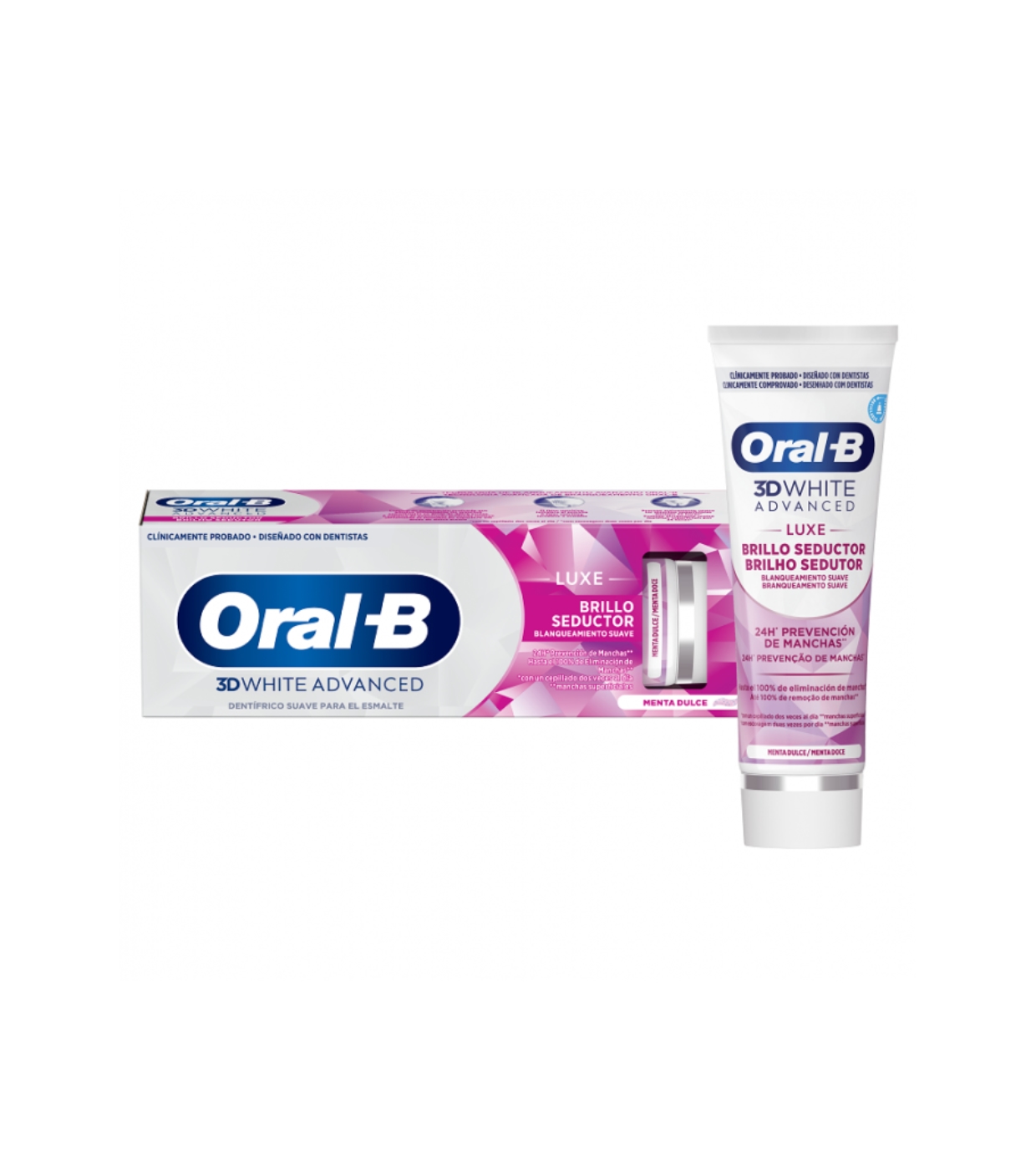 Entdecken Sie die innovative Schutzformel der Zahnpasta Oral B Oral B, die dank ihrer fortschrittlichen Mikrosphärentechnologie, die im Zahnschmelz eingeschlossene Flecken verteilt und auflöst, bis zu 100 % der Oberflächenflecken in nur drei Tagen entfernt.