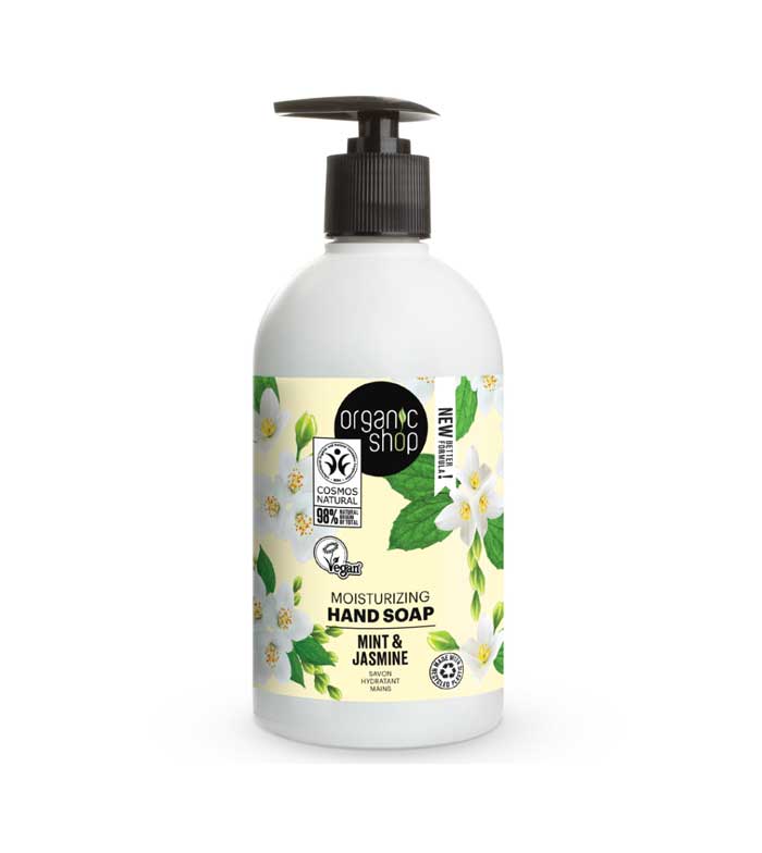 Diese feuchtigkeitsspendende Handseife aus Bio-Pfefferminz- und Bio-Jasmin-Extrakten nährt, erweicht und verjüngt die Haut Ihrer Hände intensiv, während sie sich seidig glatt anfühlt.