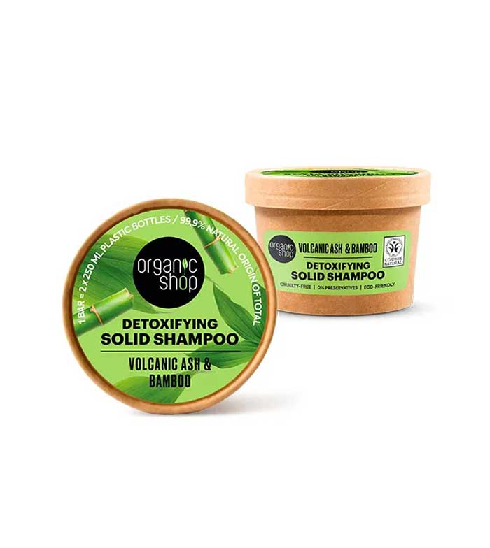 Volumengebendes festes Shampoo von Organic Shop mit Extrakt aus Vocánica-Asche und Bambus.