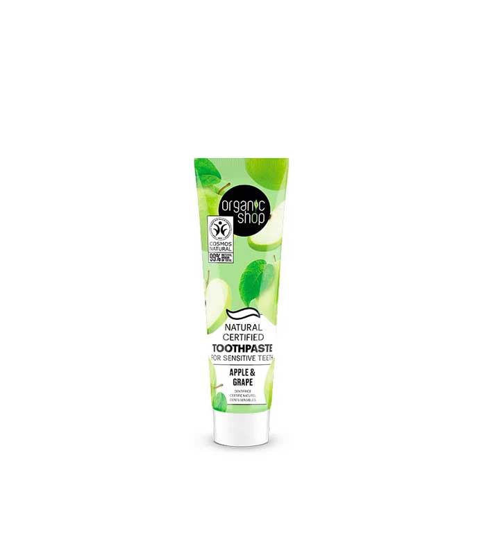 Zahnpasta für empfindliche Zähne von Organic Shop mit Apfel- und Traubenextrakt.