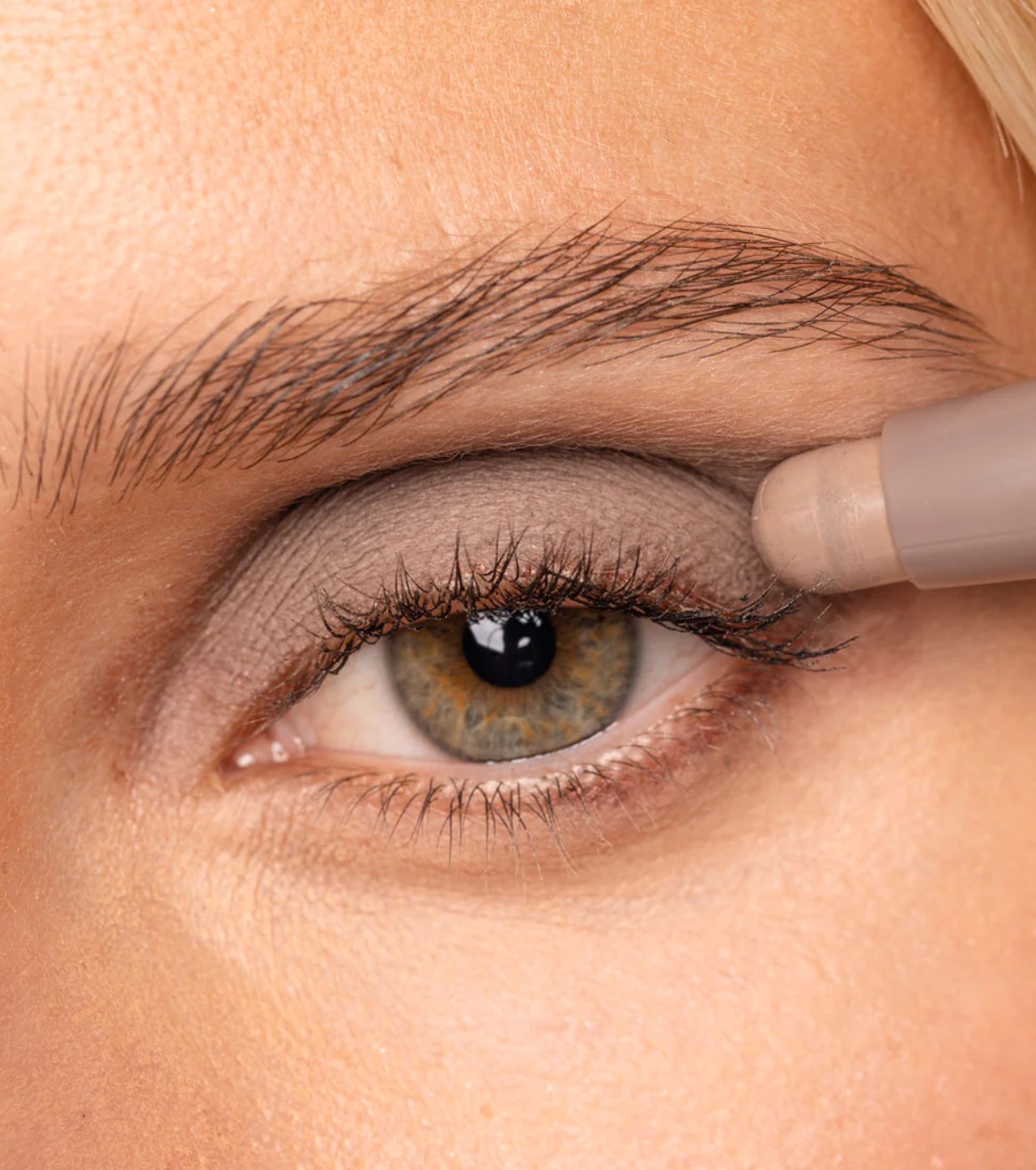 Vergessen Sie Pinsel: Tragen Sie den Lidschattenstift einfach auf Ihre Lider auf, um einen aufbaubaren, knitterfreien Auftrag zu erzielen, der lange hält.
