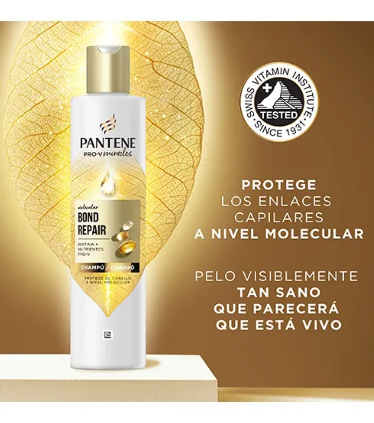 Entdecken Sie das Shampoo Pantene Bond Repair, das die Haarbindungen auf molekularer Ebene repariert und schützt.