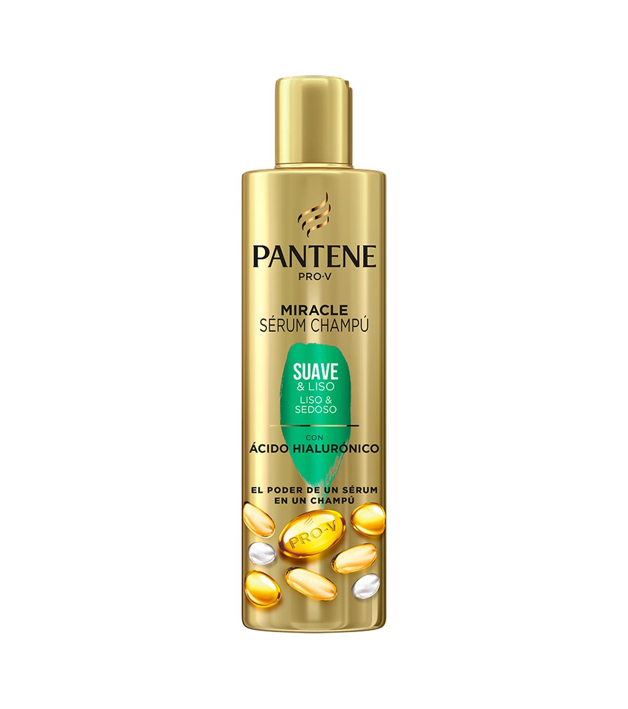 Das Miracle Serum Pantene Soft & Smooth Shampoo ist mit Nährstoffen angereichert, die krauses und widerspenstiges Haar bis in die Wurzeln mit Feuchtigkeit versorgen.