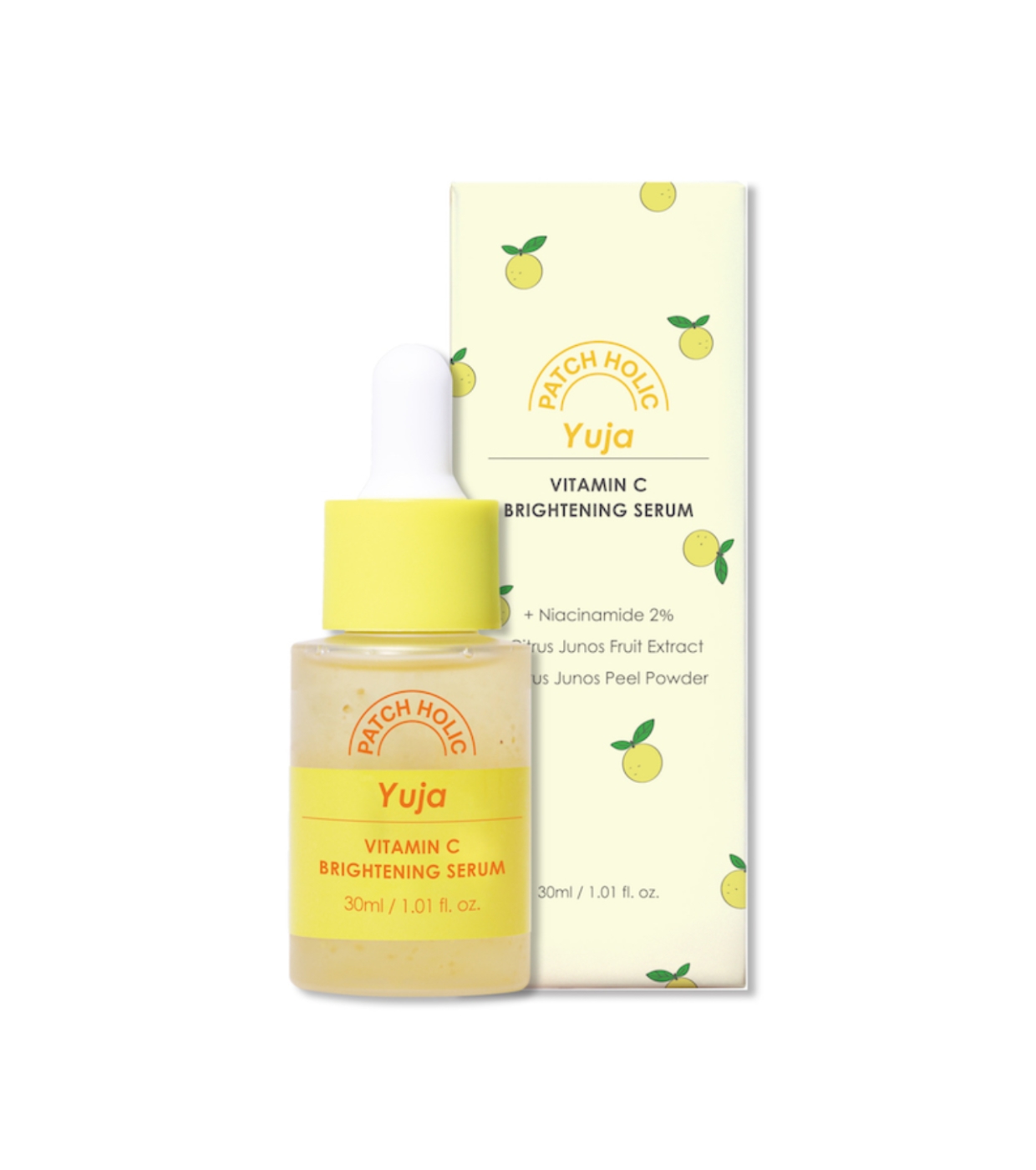 Verwandeln Sie Ihre Haut mit diesem revitalisierenden Gesichtsserum Yuja Vitamin C Brightening Serum von Patch Holic , das mit Yuja formuliert ist, einer asiatischen Frucht, die reich an Vitamin C ist und der Haut Leuchtkraft und Vitalität verleiht.