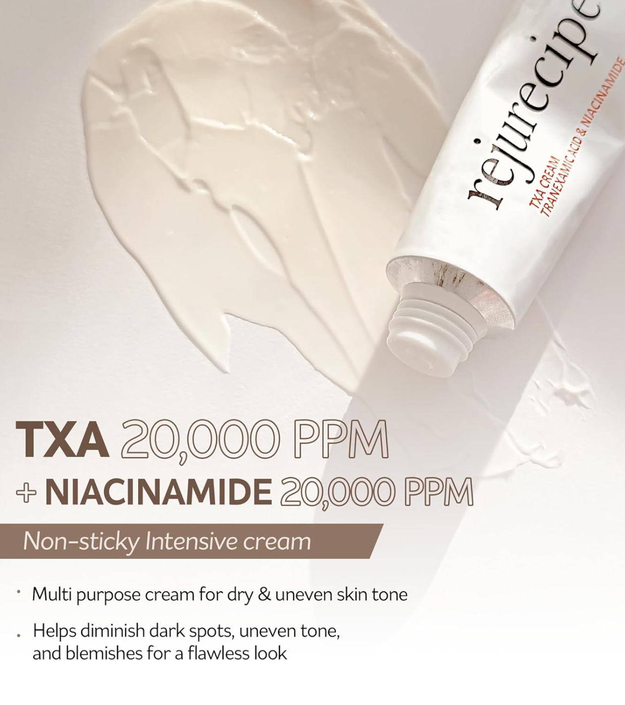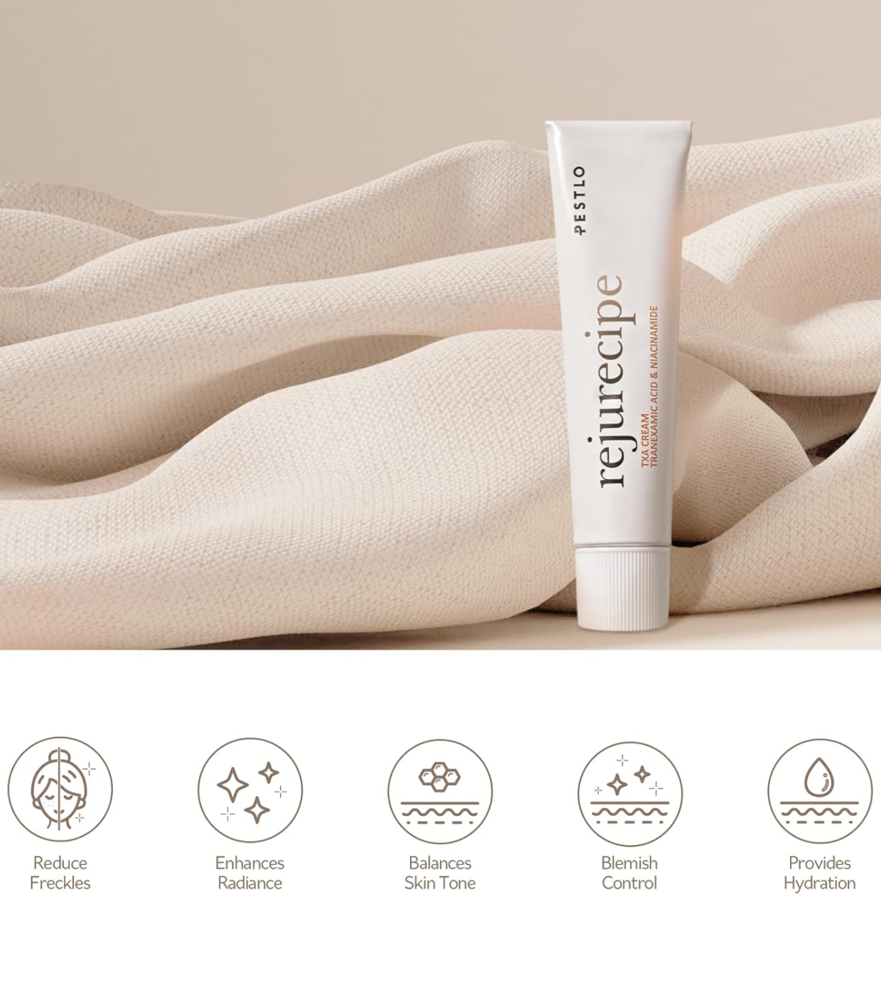 Die Rejurecipe TXA Cream von PESTLO ist eine aufhellende und feuchtigkeitsspendende Gesichtscreme, die entwickelt wurde, um die Gleichmäßigkeit des Hauttons zu verbessern, Leuchtkraft zu verleihen und die Haut auch bei empfindlicher Haut im Gleichgewicht und angenehm zu halten.