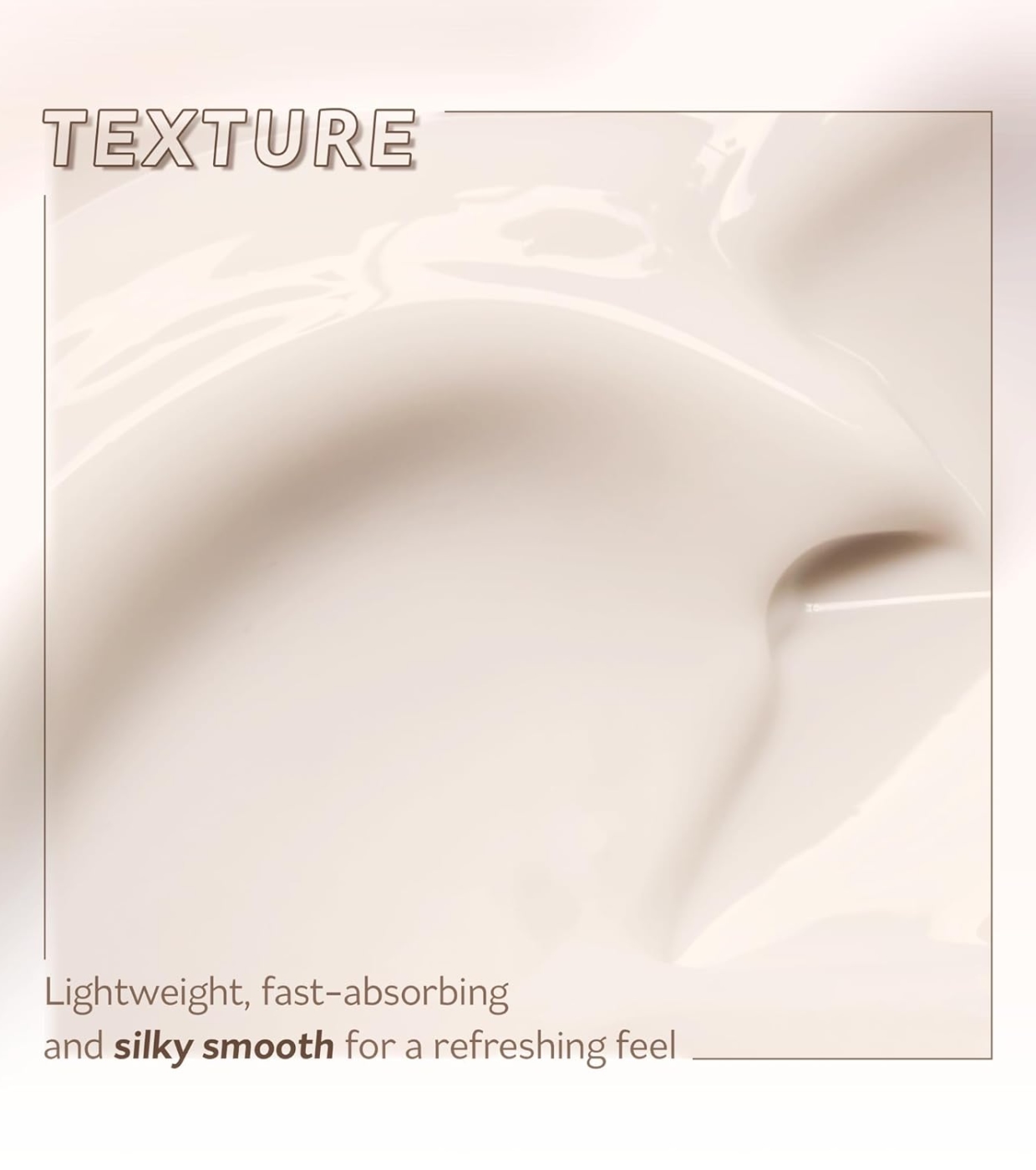 Die Creme enthält außerdem einen Antioxidantienkomplex mit Glutathion, Alpha-Liponsäure und Feigenextrakt (Ficus carica), der die Haut vor schädlichen Umwelteinflüssen schützt und gleichzeitig dazu beiträgt, sie hydratisiert, geschmeidig und strahlend zu halten.