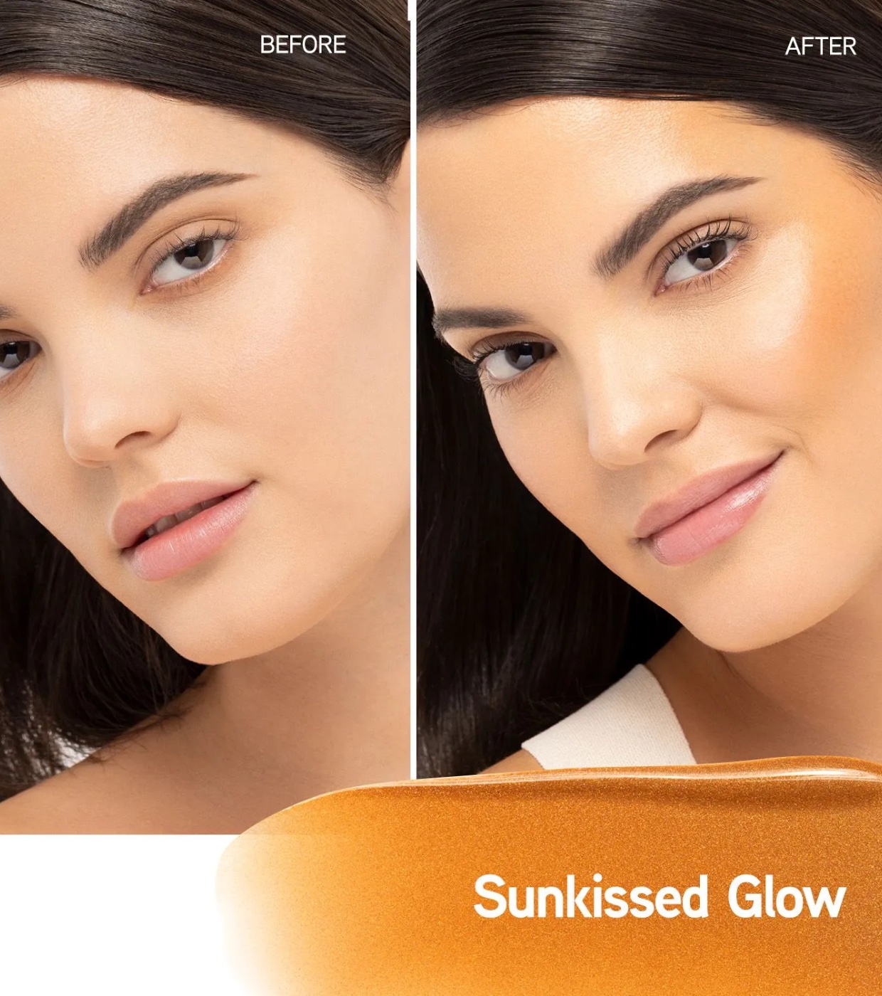 Für ein warmes, strahlendes Finish mischen Sie 1 bis 2 Tropfen mit Ihrer Grundierung, Feuchtigkeitscreme, Sonnencreme oder Grundierung.