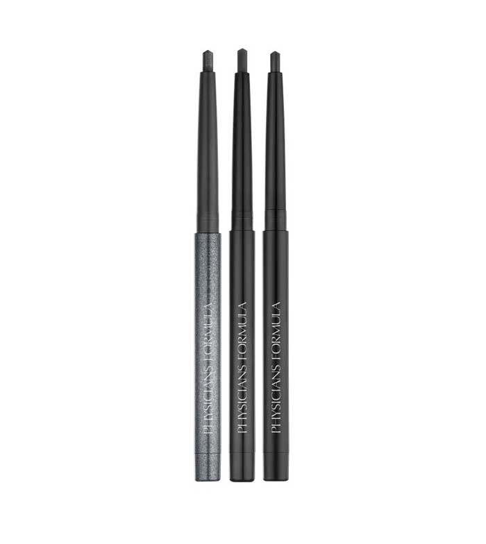 Ein perfektes Trio von nicht verschmierten Eyeliner, die drei verschiedene lang anhaltende Oberflächen bieten: Glanz, Satin und Matt.