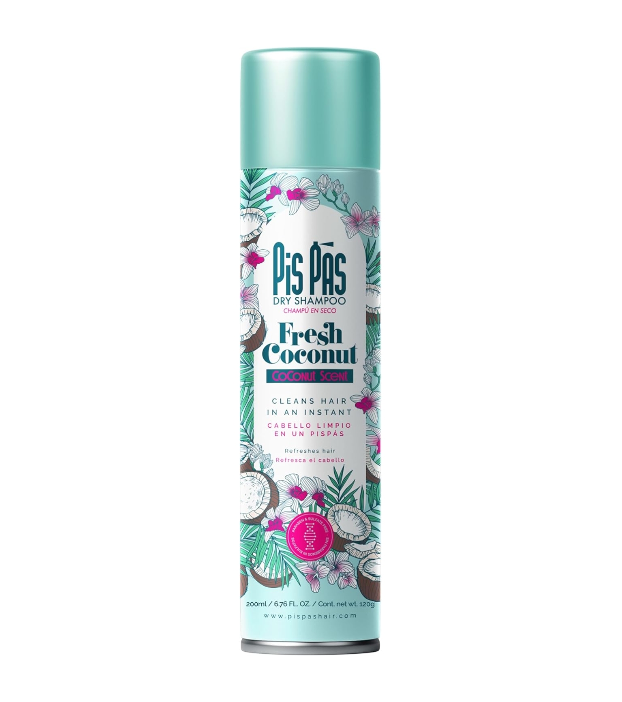 Das Trockenshampoo Fresh Coconut von PisPas bietet eine schnelle und effektive Lösung, um das Haar ohne Wasser zu erfrischen und zu reinigen.
