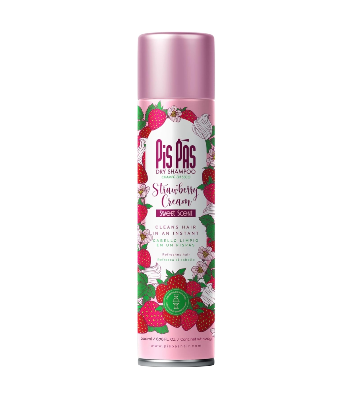 Das Trockenshampoo Strawberry Cream von PisPas bietet eine schnelle und effektive Lösung, um das Haar ohne Wasser zu erfrischen und zu reinigen.