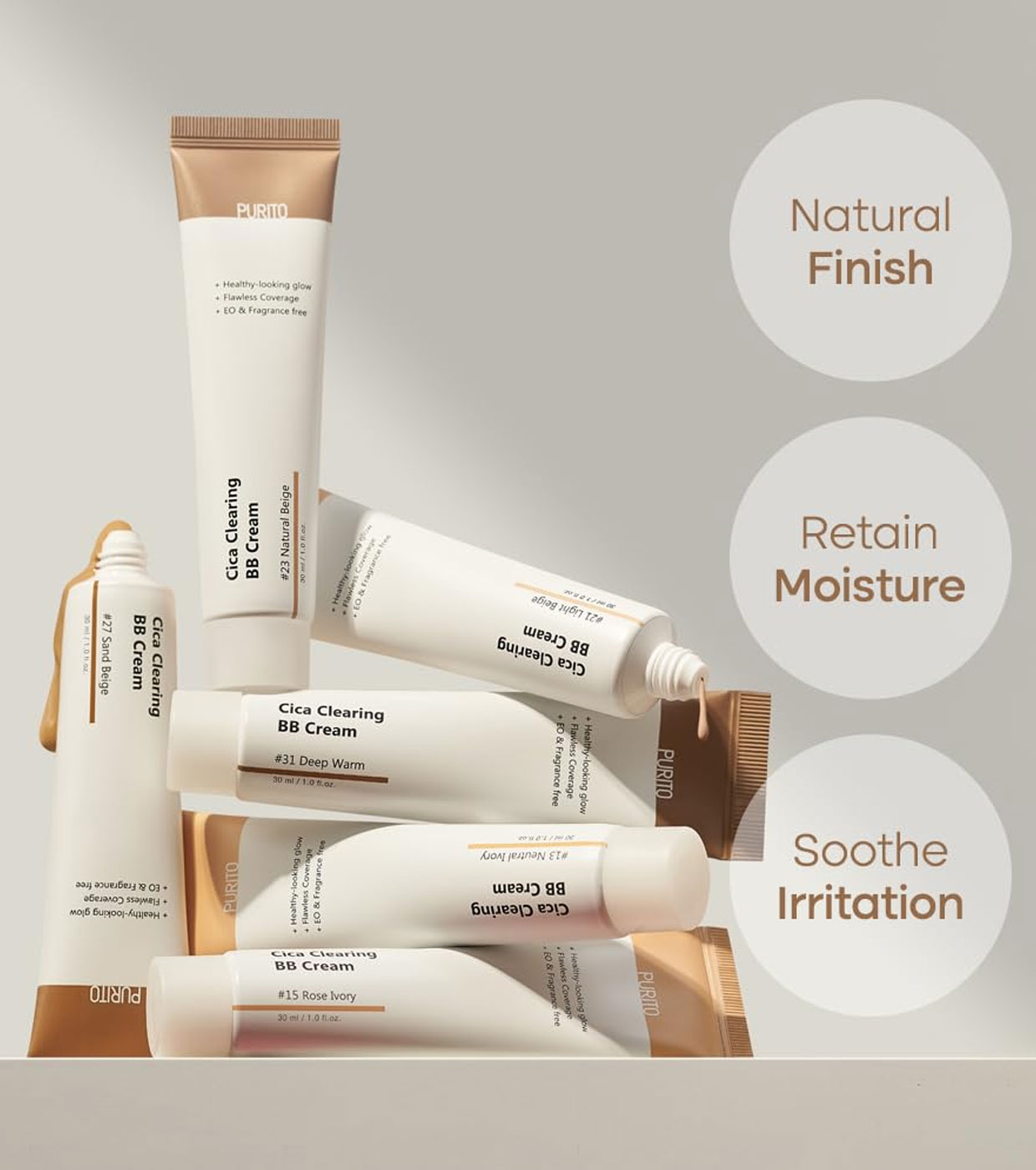 Genießen Sie strahlende und gepflegte Haut mit der Cica Clearing BB Cream von PURITO , dem Schlüssel zum Versiegeln Ihrer Hautpflegeschritte mit einem weichen und gleichmäßigen Schleier.