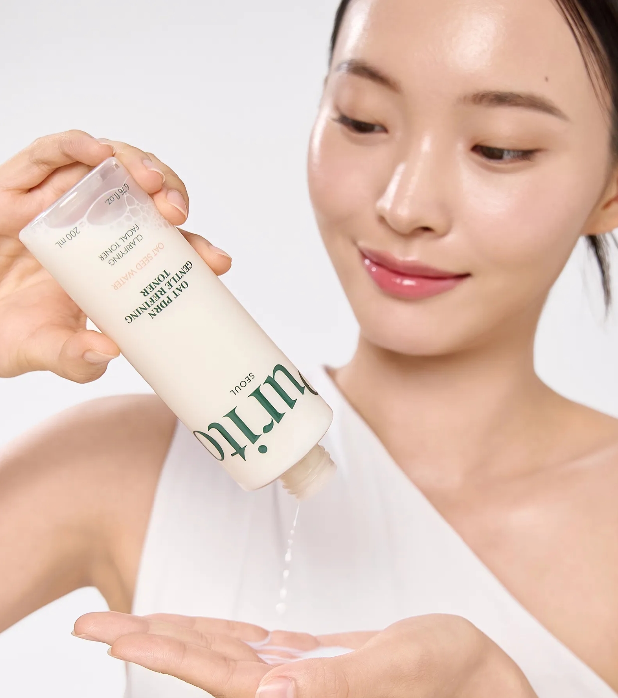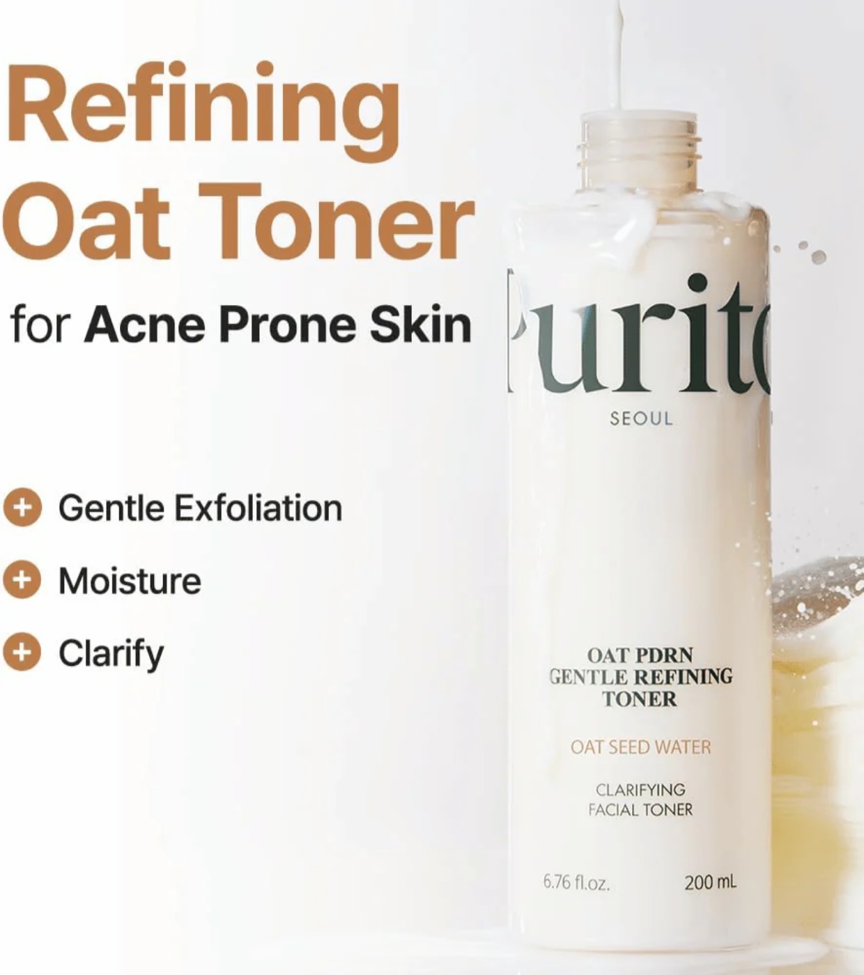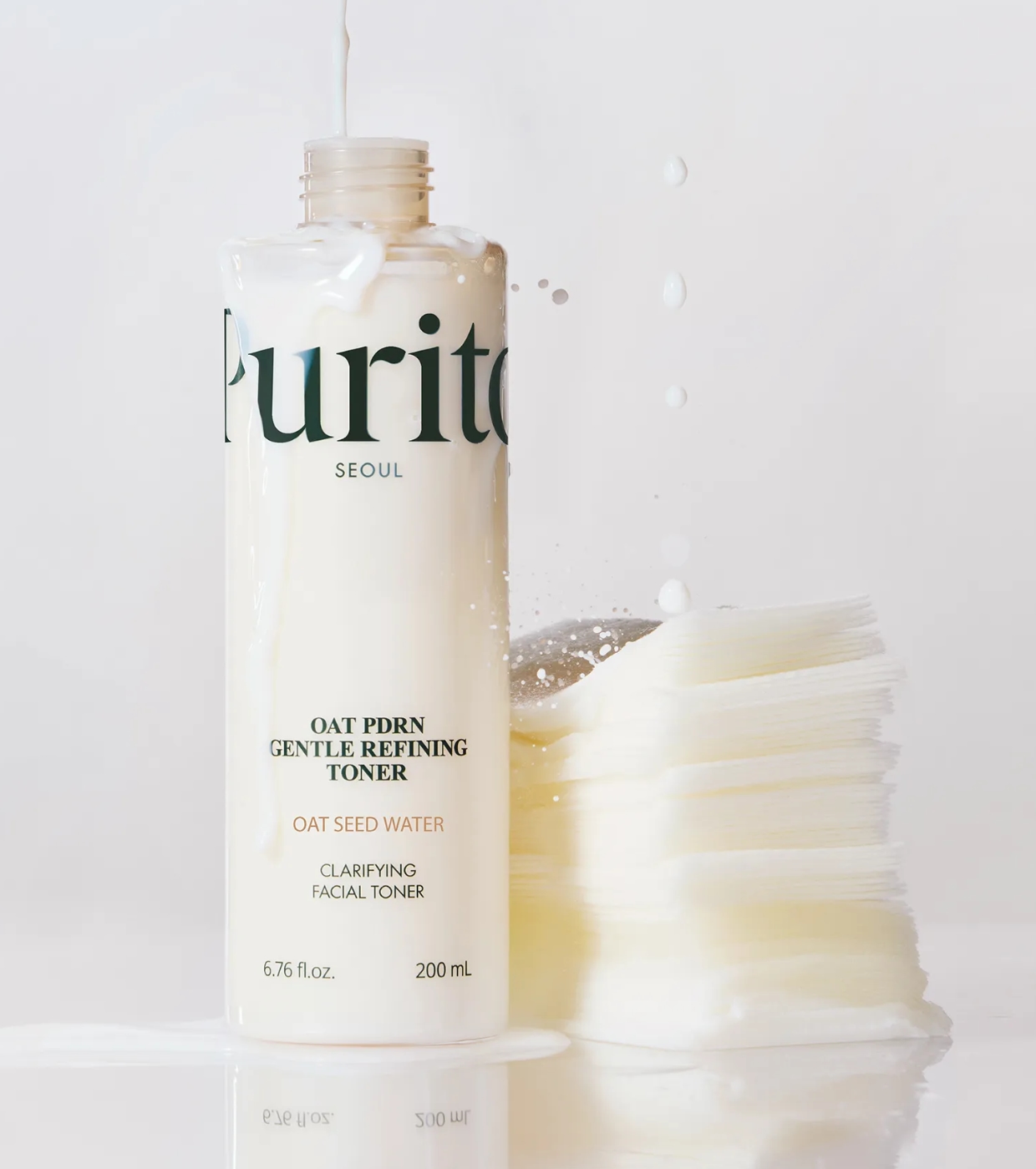 Das Oat PDRN Gentle Gesichtswasser von Purito hat eine "milchige" Textur und wurde entwickelt, um die Haut weicher zu machen, die Hautstruktur zu verbessern und zu beruhigen, ohne auf aggressive Peelings zurückzugreifen.