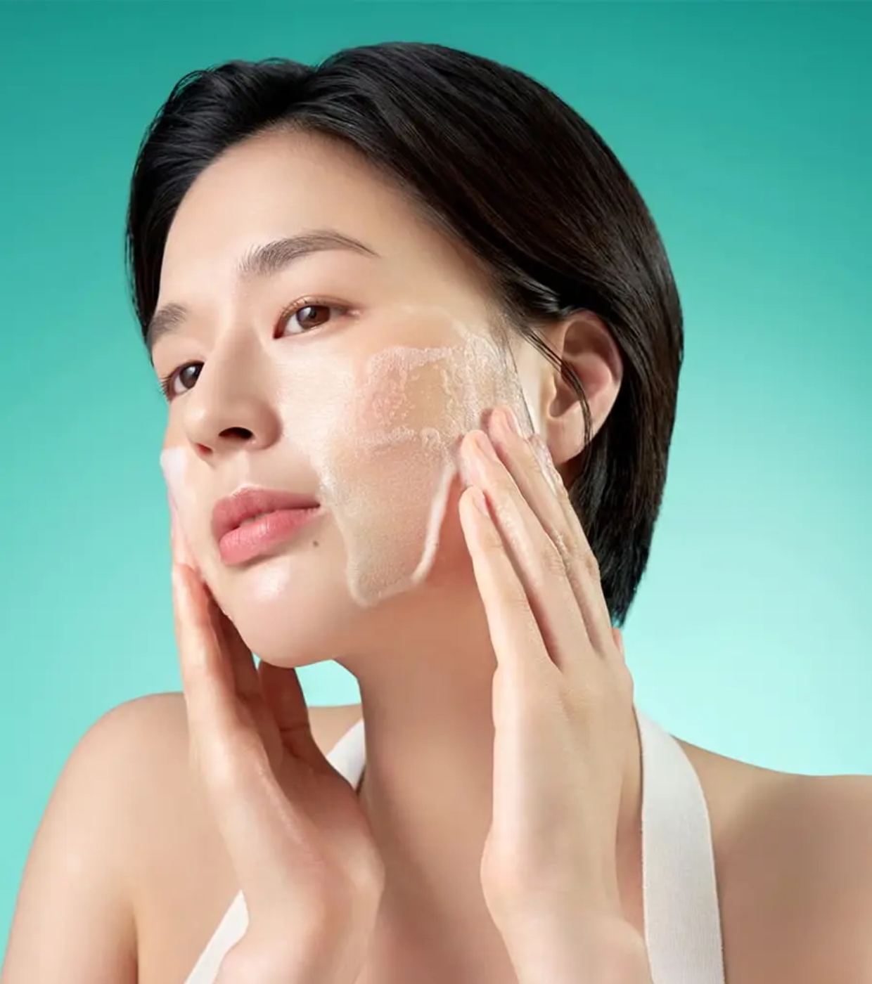 So reduzieren Sie überschüssigen Talg: Massieren Sie das Reinigungsmittel in fettigere Bereiche wie die T-Zone (Stirn, Nase und Kinn) ein.