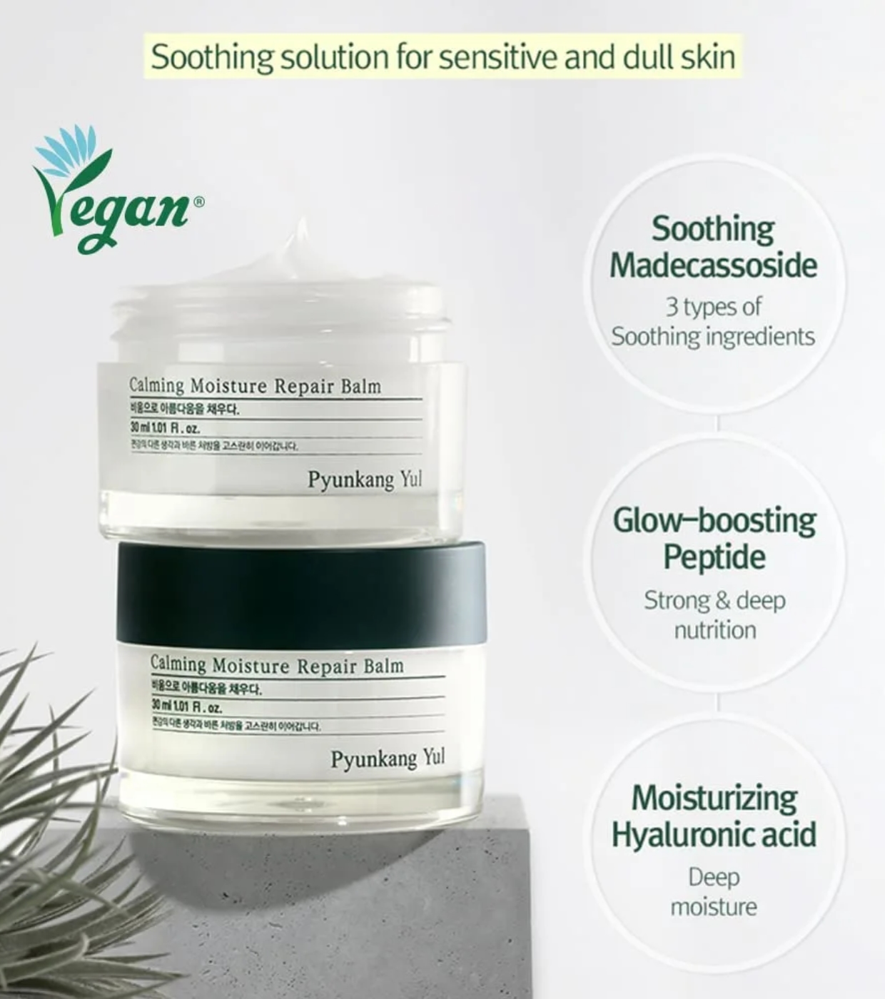 Pyunkang Yul Calming Moisture Repair Balm ist ein beruhigender, regenerierender und feuchtigkeitsspendender Gesichtsbalsam, der speziell für empfindliche Haut, Akne, Rötungen oder Reizungen entwickelt wurde.