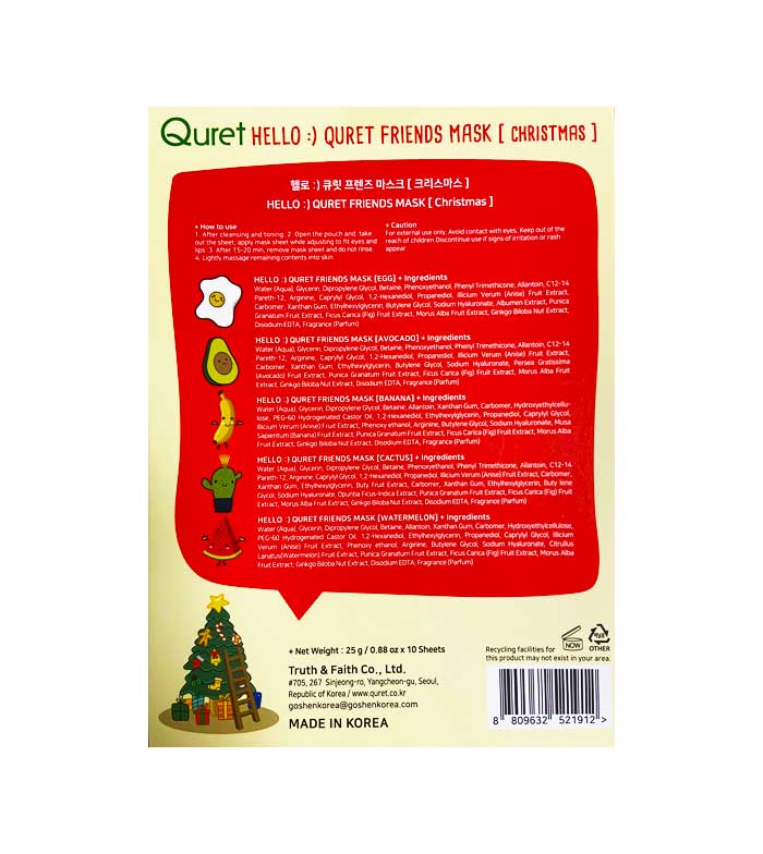 Set mit 10 Masken, um Ihrer Haut an Weihnachten, an denen sich die Ereignisse häufen und wir perfekt aussehen möchten, zusätzliche Pflege zu geben.