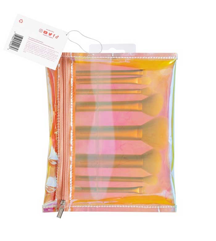 Dieses fantastische Set enthält 8 Mini-Pinsel zum Auftragen von flüssigen, cremigen und puderförmigen Produkten und einen farbenfrohen Kulturbeutel.