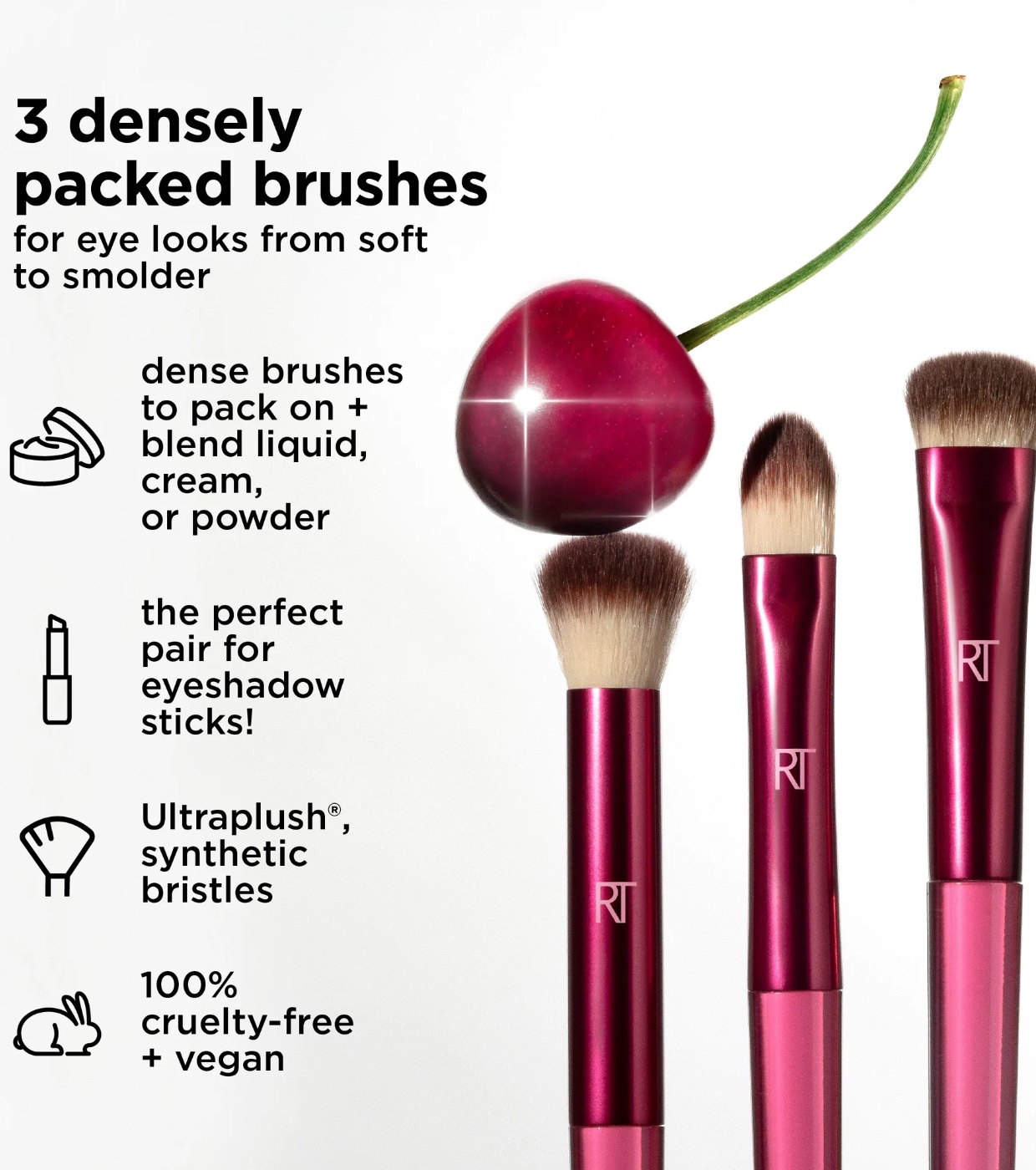 Das Real Techniques Real Techniques Eye Brush Trio ist eine Kollektion in limitierter Auflage, die 3 Lidschattenpinsel umfasst, mit denen Sie jede Art von Augen-Make-up präzise verblenden können, vom leichtesten bis zum intensivsten.