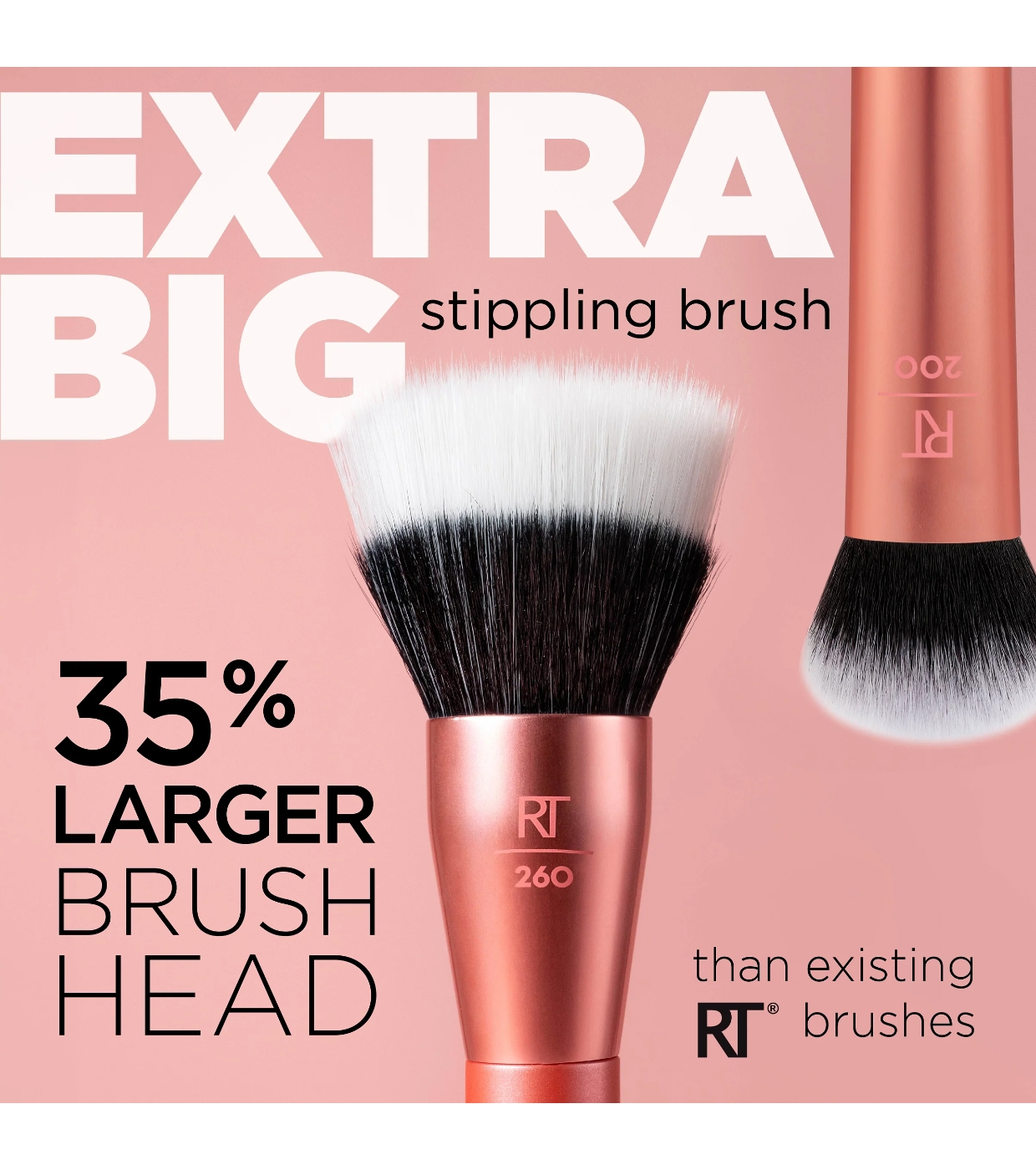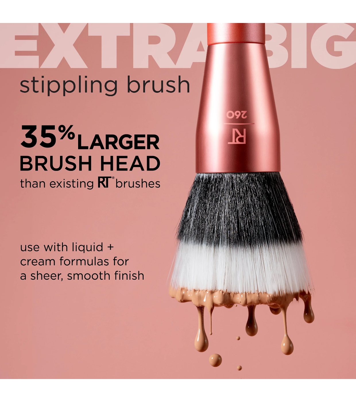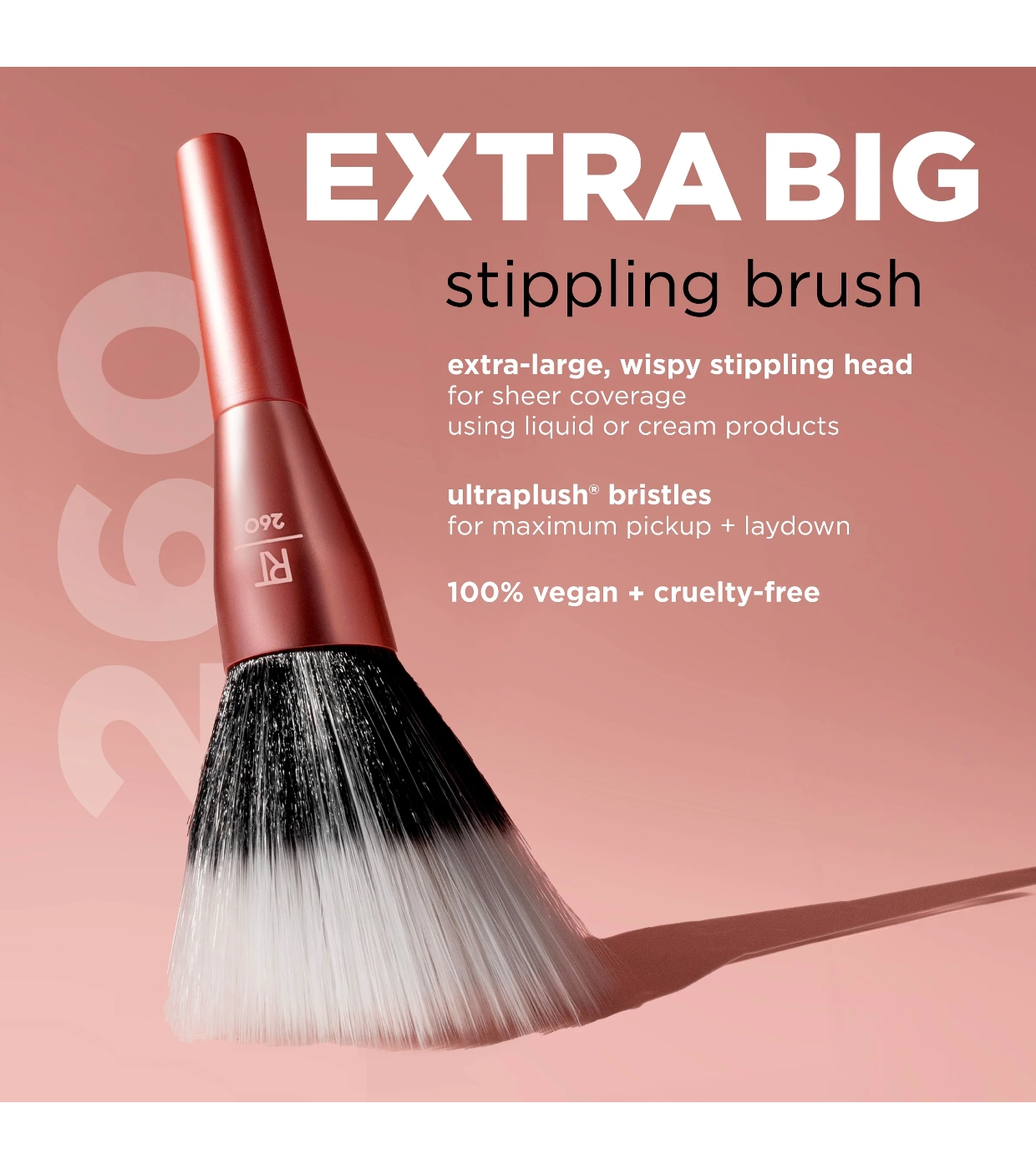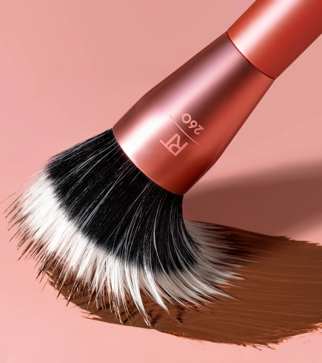 Der Make-up-Pinsel 260 verfügt über Doppelfaserborsten, die eine anpassbare Abdeckung mit einem weichen Finish bieten.
