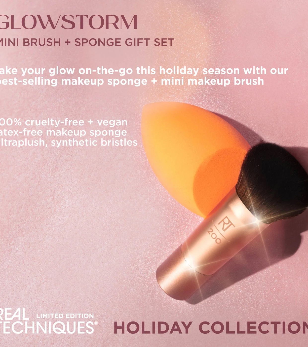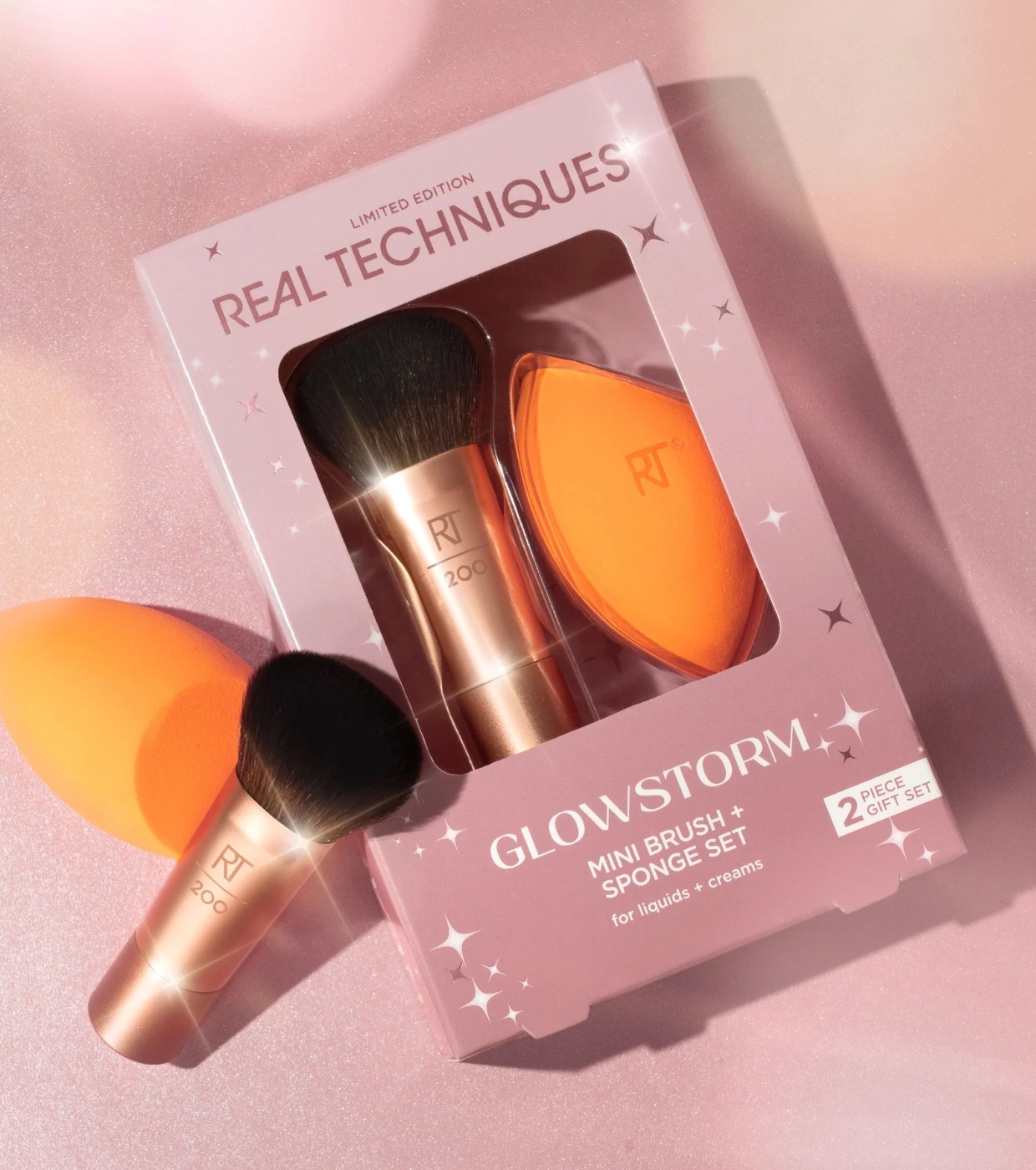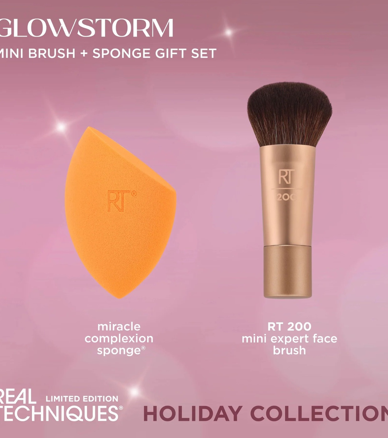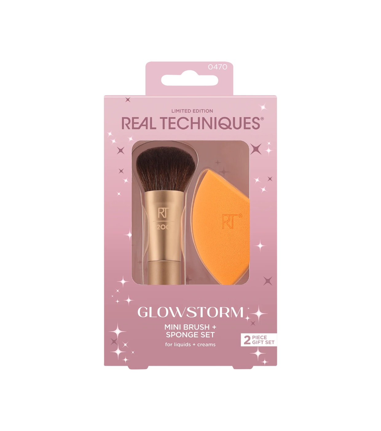 Mini-Pinsel + Schwamm-Set Glowstorm Holidays 24 Real Techniques : Limited Edition für ein strahlendes Finish.